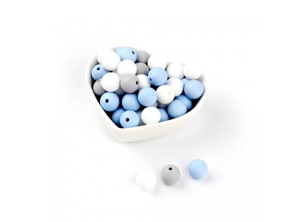 Silikonové korálky 12mm (10ks) - pastel blue mix