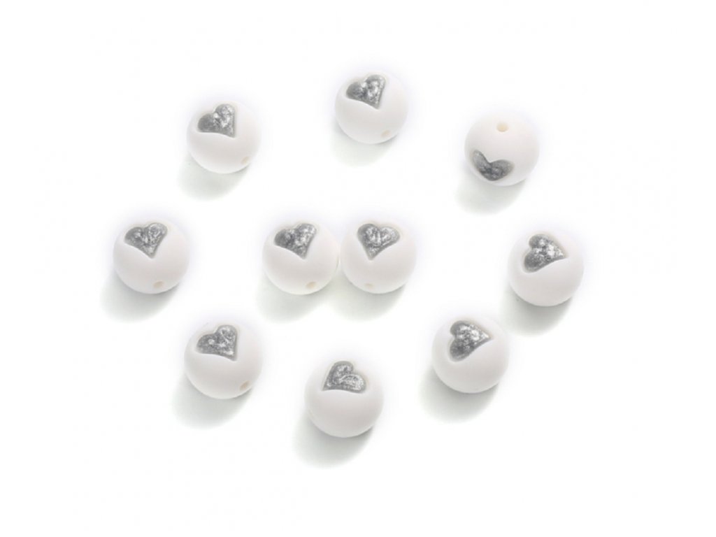 Silikonové korálky 15mm - SRDCE (1ks) - white (č.2)