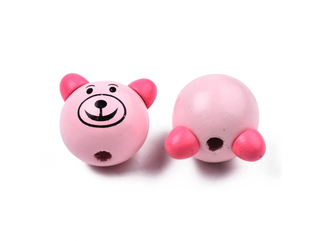 Dřevěná hlava medvídek pr.24mm (2ks) - růžová