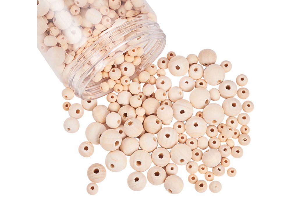 Dřevěné korálky - mix velikostí (420ks) - přírodní