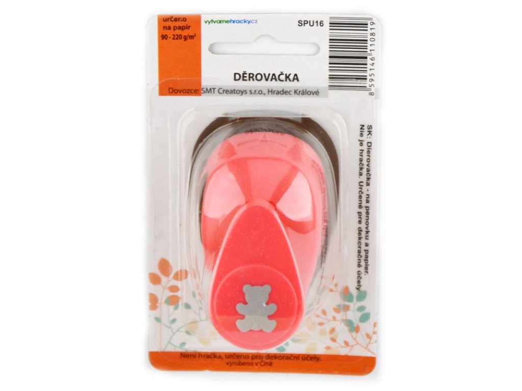 Děrovačka pro výtvarnou tvorbu. Postup: 1. pracujte s děrovačkou na pevné a rovné ploše. 2. vložte papír vhodné tloušťky - 90-220 g/m2 a zatlačte na páku statickým tlakem. Nikdy ne úderem na páku. 3. POUŽÍVEJTE POUZE NA PAPÍR. Děrovačky nikdy nepoužívejte na materiály potažené lepící vrstvou (například na samolepicí štítky), na pěnovku, na papírové ubrousky. Děrovačky nejsou vhodné pro děti do 3let.