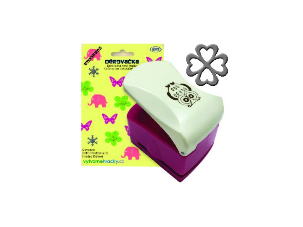 Děrovačka pro výtvarnou tvorbu. Velikost výseku 32 mm. Postup: 1. pracujte s děrovačkou na pevné a rovné ploše. 2. vložte papír vhodné tloušťky - 160-240 g/m2 a zatlačte na páku statickým tlakem. Nikdy ne úderem na páku. 3. po proděravění opatrně vytáhněte zbylý papír. 4. POUŽÍVEJTE POUZE NA PAPÍR. Děrovačky nikdy nepoužívejte na materiály potažené lepící vrstvou (například na samolepicí štítky), na pěnovku, na papírové ubrousky. 5. raznici lze ostřit slabou hliníkovou folii a mazat voskovým papírem. 6. DOPORUČUJEME DĚROVAČKU VYČISTIT PO 3. POUŽITÍCH - odklopte páku raznice, vyjměte kolečko pod pákou a úzkým předmětem odstraňte přebytečné papírky. Děrovačka není hračka.