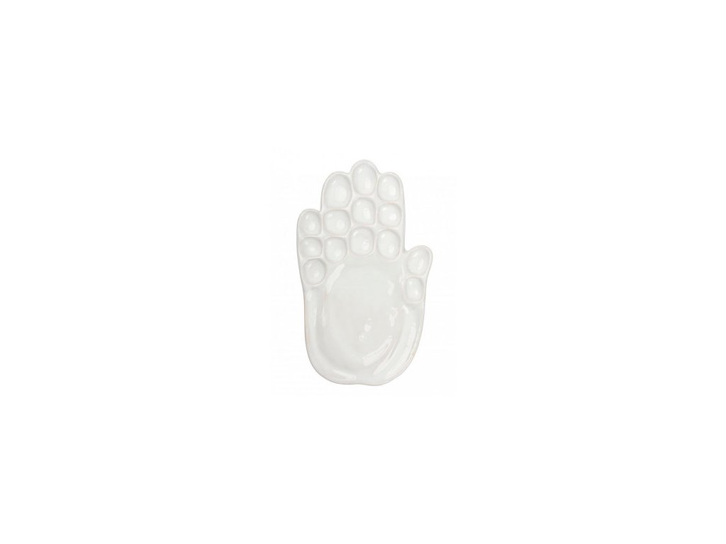 Porcelánová paleta ruční výroby, vhodná zejména pro akvarelové barvy. Paleta je rozdělena na několik částí ve tvaru ruky