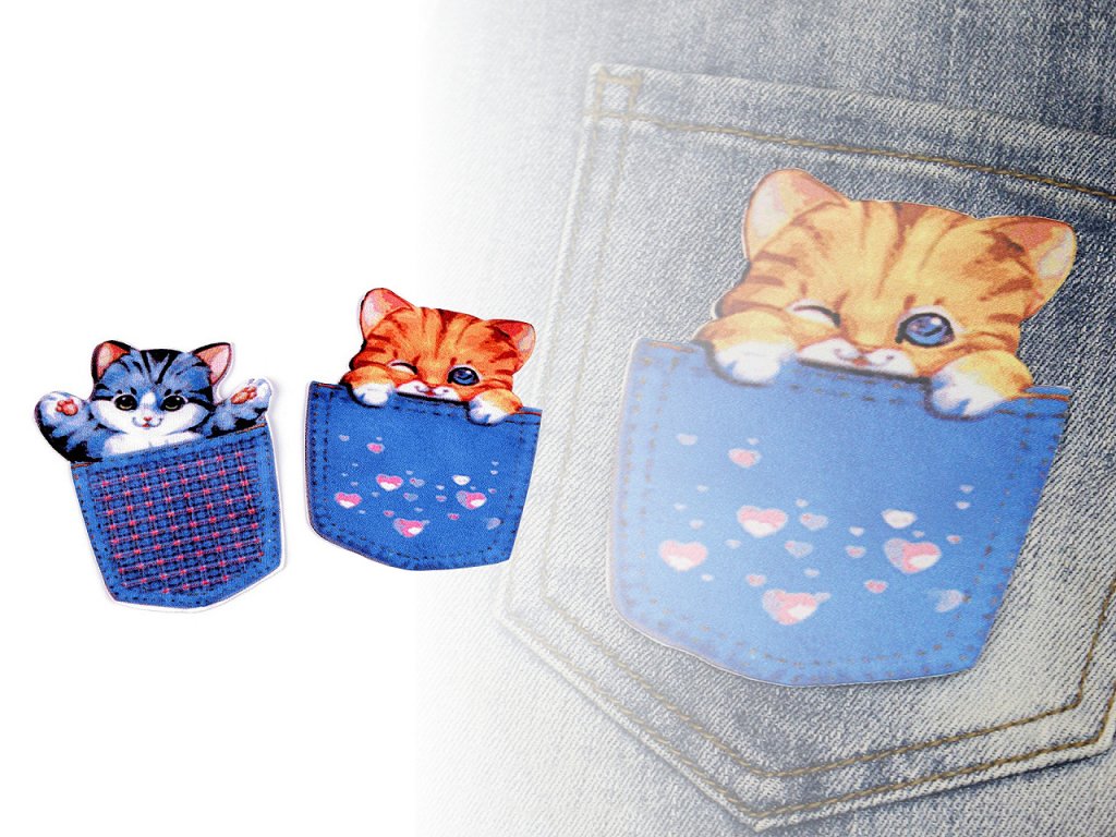 Nášivky s kočkou mají kvalitní barevný potisk. Díky motivu vykukující kočky z kapsičky jsou velice roztomilé. Využijete je k ozdobení oděvů např. mikin, bund, svetrů, čepic, tašek i batohů. Můžete je našít nebo nalepit.