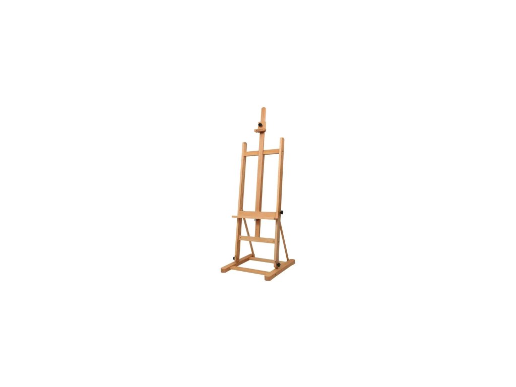 Malířský stojan typu "H" s nastavitelnou výškou od 175 do 242 cm. Díky pevné základně je stabilní a spolehlivý. Výšku a rozměr plátna nastavíte pomocí kovového mechanismu. Spodní lišta dobře poslouží pro odložení vašich malířských potřeb. Stojan je vyrobený z bukového dřeva a má dlouhou životnost.