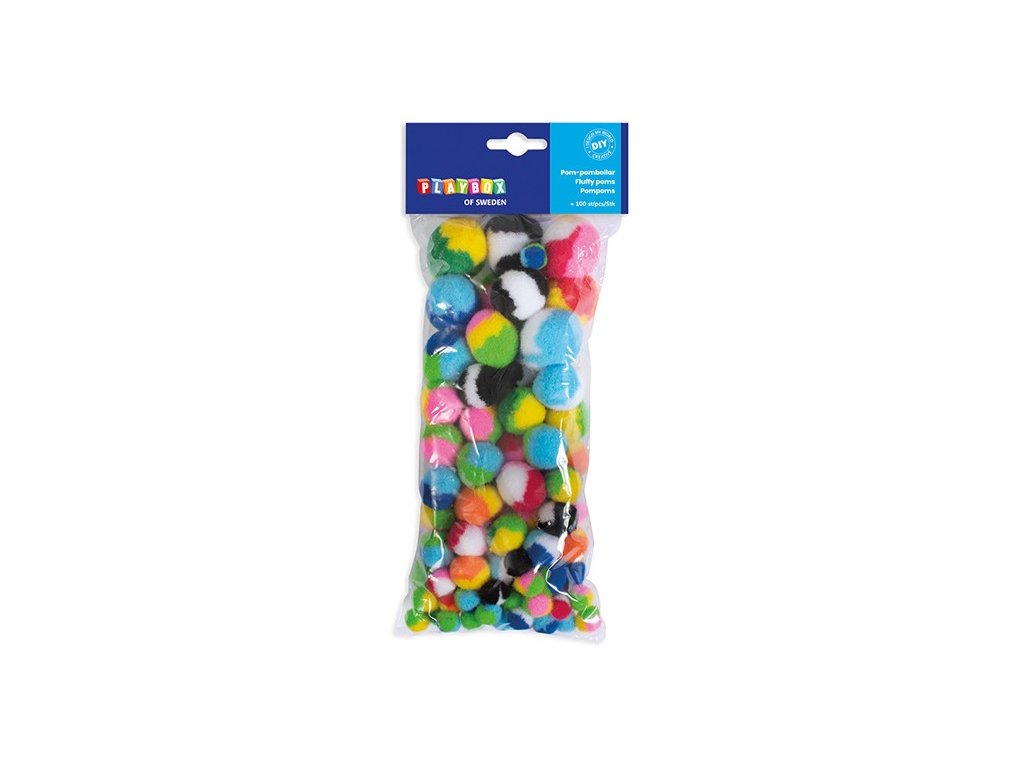 Balení obsahuje 100 ks o Ø15-35 mm v barvách černé, bílé oranžové, červené, žluté, modré, zelené, růžové.
