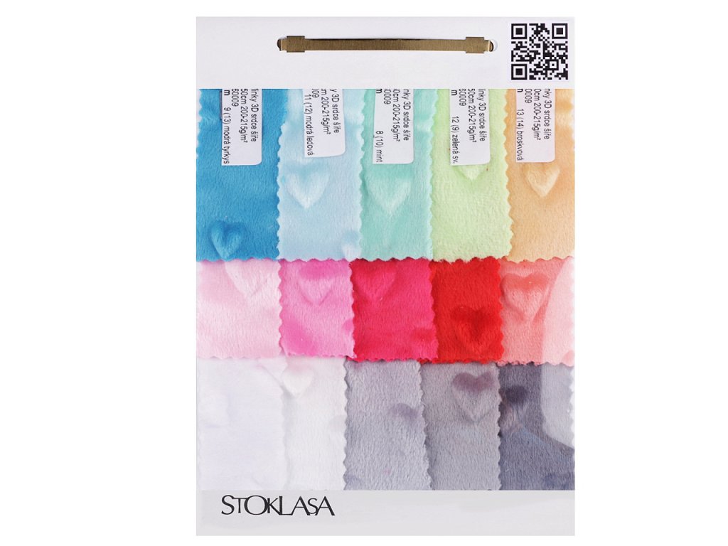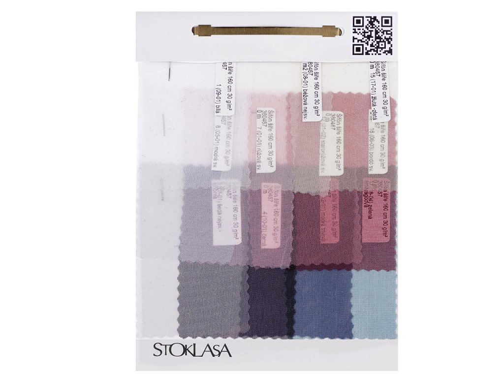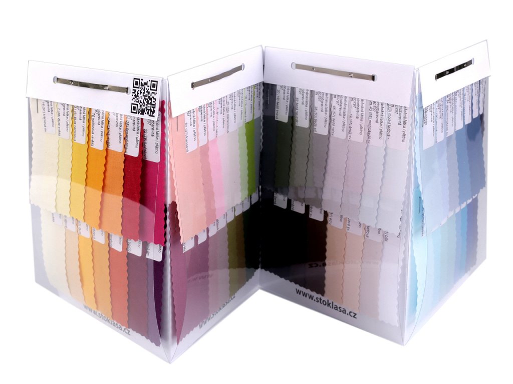 Vzorkovníky látek, které u nás najdete. Na každém vzorkovníku je QR kód, který vás po jeho načtení v aplikaci odkáže přímo na stránku konkrétní látky. QR kód vám urychlí a zpohodlní vyhledávání.