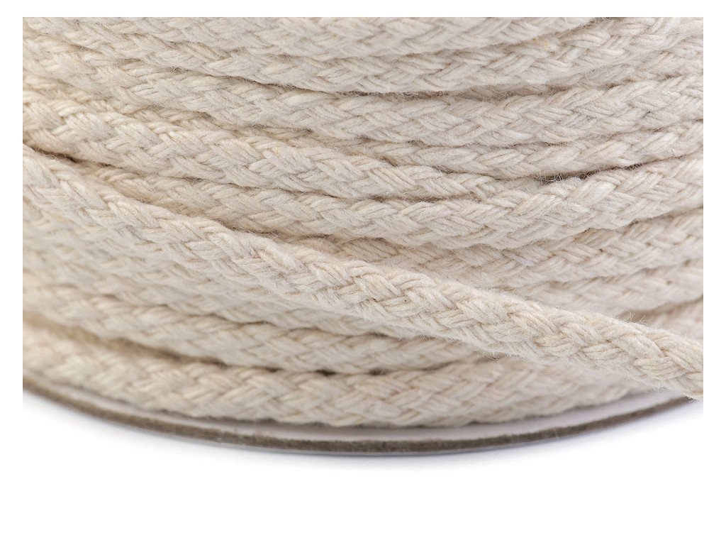 [Bavlněná šňůra je pevná a odolná. Uvnitř je dutá a díky tomu i poddajná. Využijete ji v textilní galanterii i na výrobu dekorací (pletení košíků, tašek apod.). Je vhodná například do tunýlků kapucí mikin, kalhot nebo bund. ]