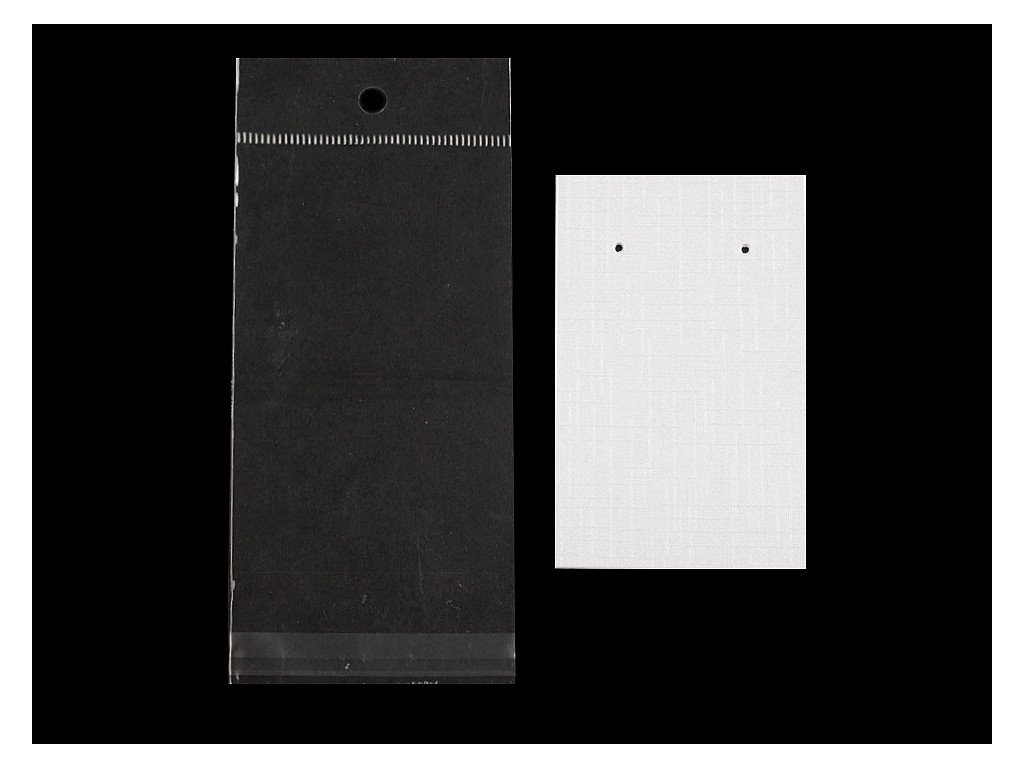 Karta je určená pro náušnice. Na kartách vynikne jakákoliv bižuterie nebo výrobky ze stříbra, zlata i chirurgické oceli. Součástí karty je také sáček s eurozávěsem.