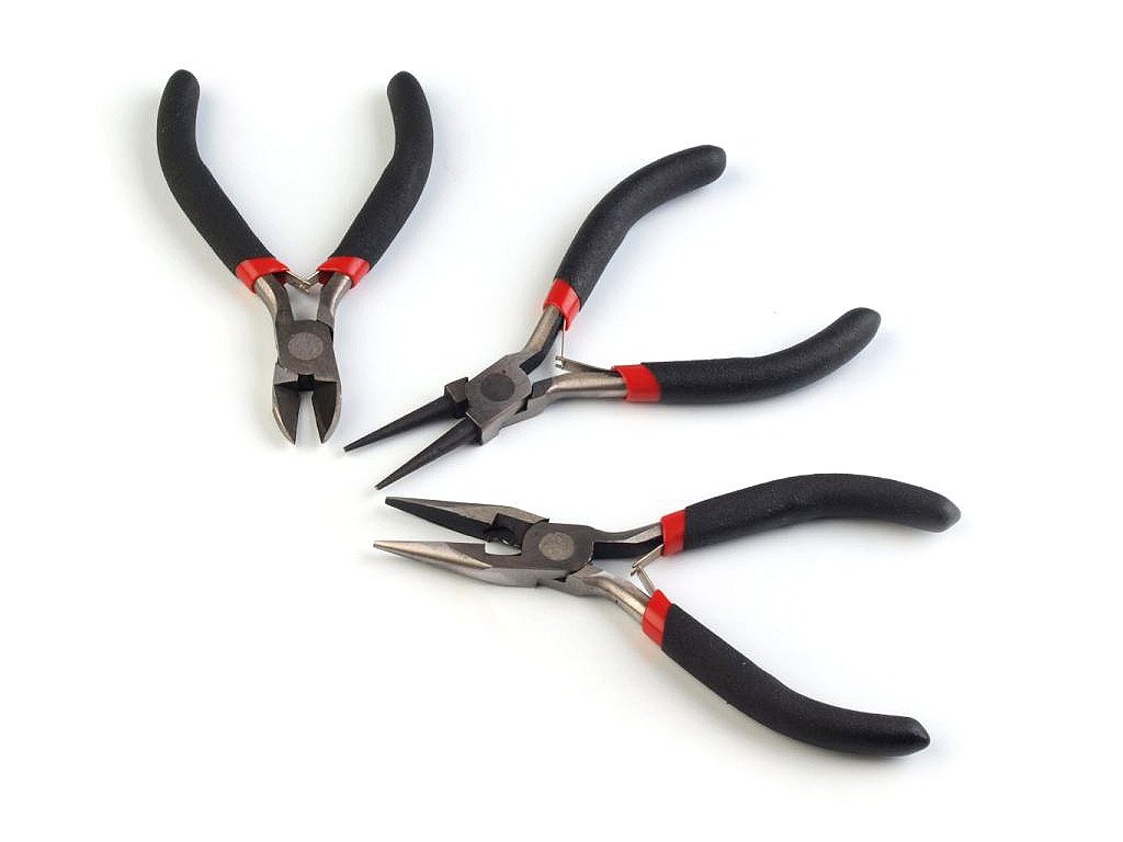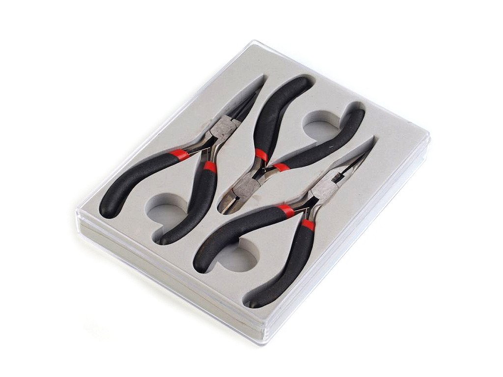 Sada obsahuje kulaté ketlovací kleště, štípací kleště a [půlkulaté kleště se zoubky]. Vše je v praktické krabičce. Ketlovacími kleštěmi zhotovíte nejmenší kroužek o průměru 1,66 mm, největší 4,86 mm.