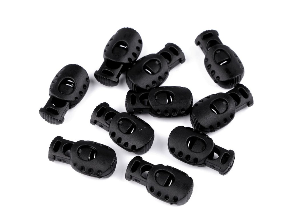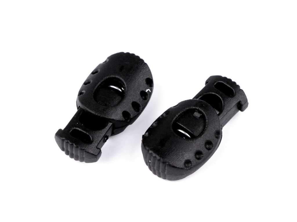 Plastová brzdička se používá jako součást oděvů a bund pro efektní a praktické ukončení šňůrek s funkcí posunu. Díky ní si můžete utáhnout kapuci, poupravit délku dolního lemu sportovní bundy apod. Můžete ji využít i na batohy a vaky. Uvnitř brzdy je pružinka, která zajišťuje pevné uchycení. Pokud zamáčknete vyčnívající kolíček, můžete s brzdou popojíždět.