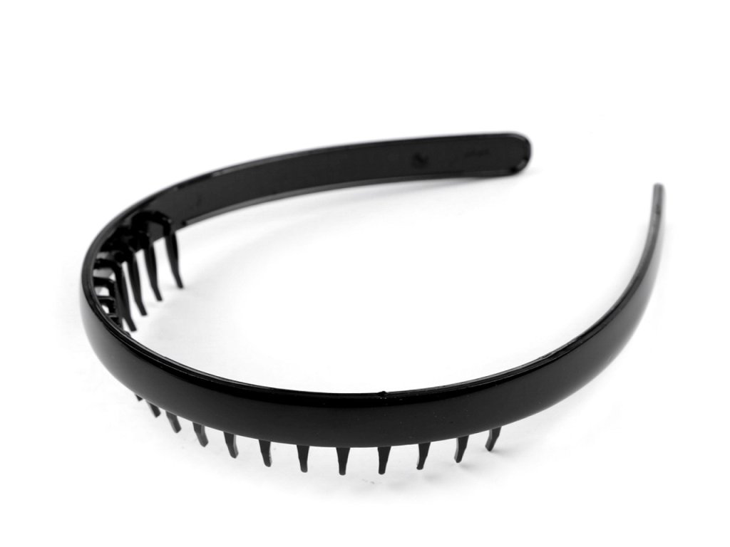 Plastová čelenka s hřebínkem se hodí pro dospělé i děti. Její povrch je lesklý a hladký. Čelenka se velice příjemně nosí, díky hřebínku s dlouhými zuby perfektně drží.