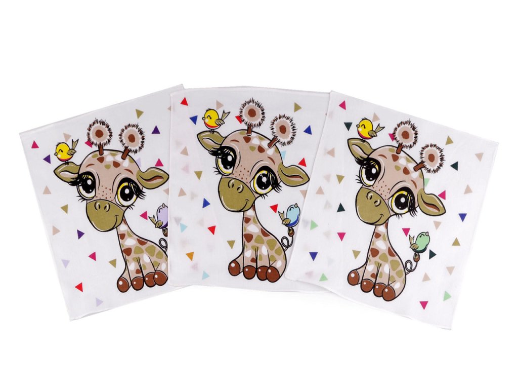 [Tradiční látkové kapesníky s veselými dětskými motivy. Díky příjemnému materiálu je kapesník jemný k dětské pokožce, jeho kvalitní zpracování zaručuje vysokou odolnost a dlouhou životnost. Dětské obrázkové kapesníky jsou ideální pro použití ve školce, školách, na výletech i při rodinných akcích. Jedno balení obsahuje 6 kusů kapesníků.