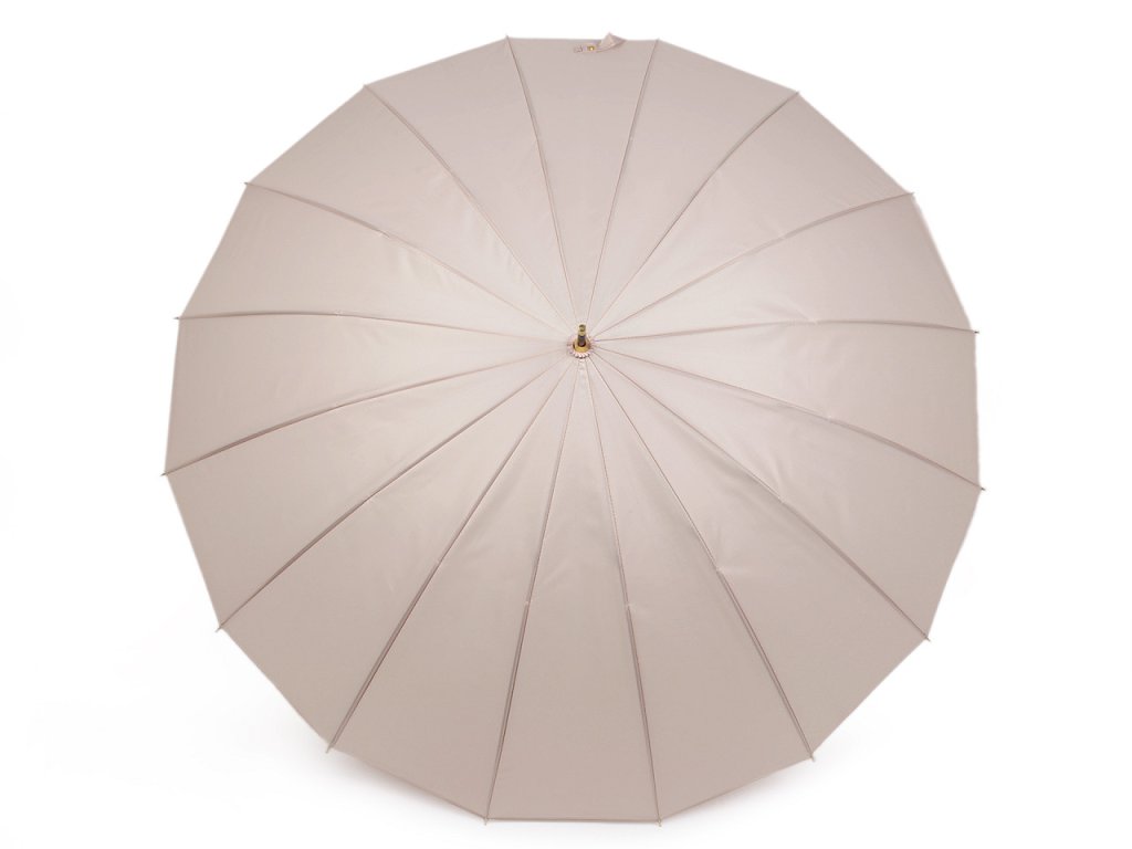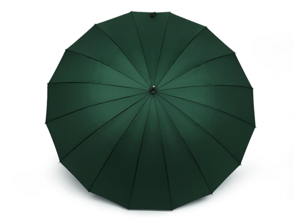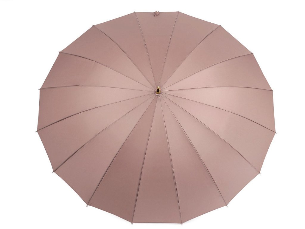 Velký dámský vystřelovací deštník vás spolehlivě ochrání před nepřízní počasí. Skládá se z 16 výsečí, díky kterým se deštník řadí mezi luxusní kousky. Konstrukce je vyrobená z pružných lamel zajišťujících vysokou pevnost a stabilitu. UV filtr vás ochrání před slunečním zářením. Deštník má klasickou tyč zakončenou pevnou rukojetí.