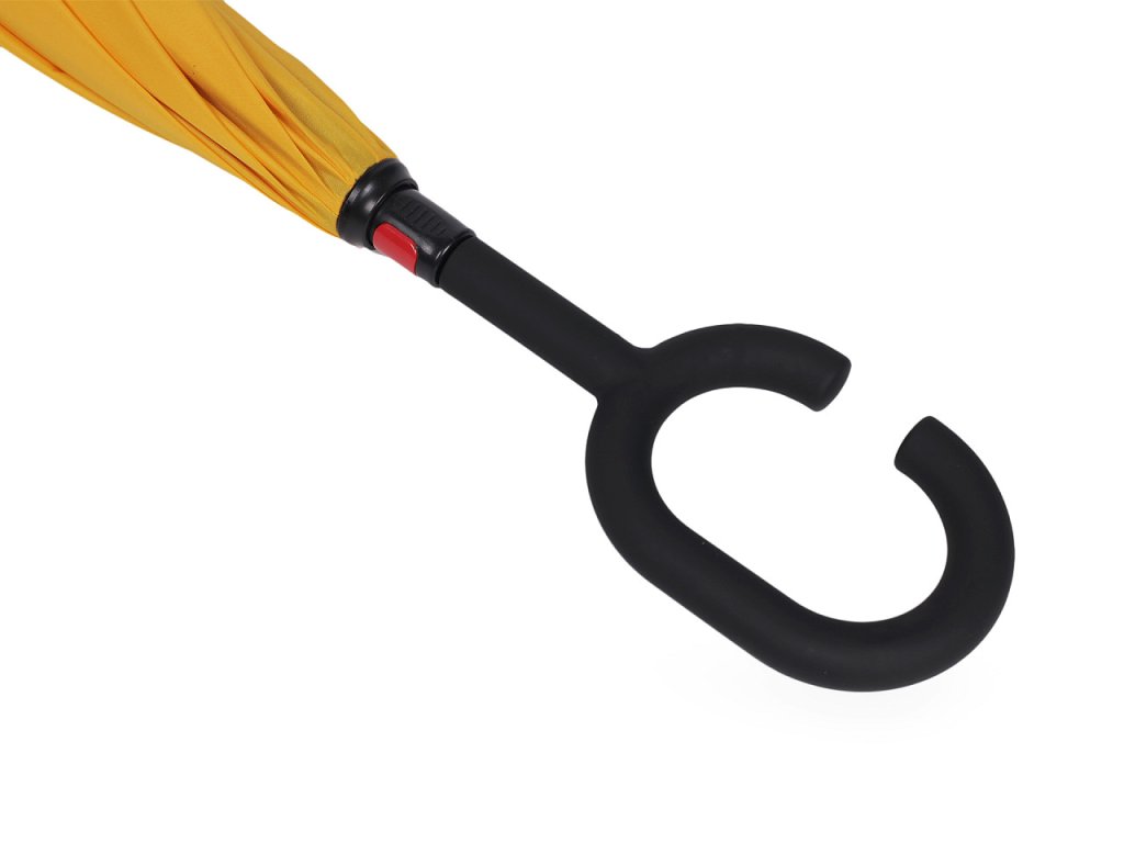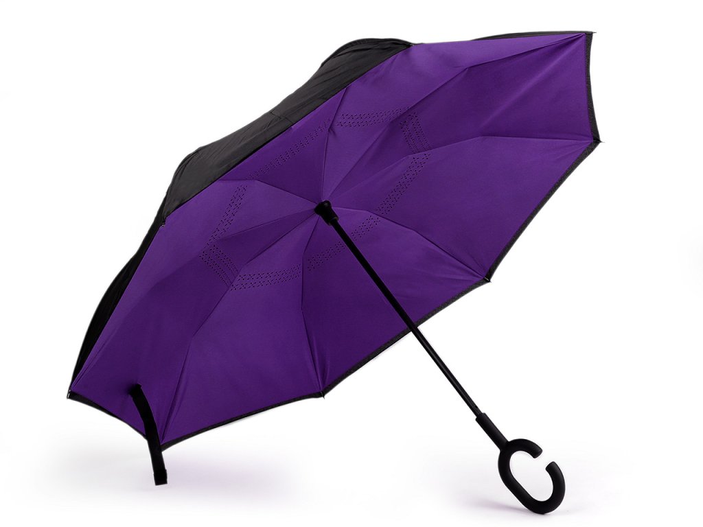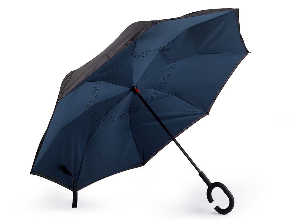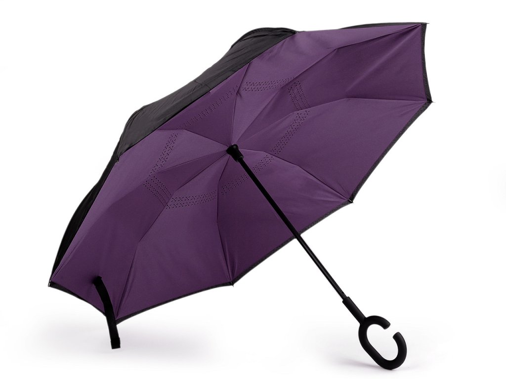 Obrácený deštník s okrasně perforovaným vnitřním potahem má revoluční řešení konstrukce. Díky opačnému otevírání a zavírání deštníku směrem vzhůru voda zůstane schovaná uvnitř v deštníku. Je to veliká výhoda např. když usedáte do automobilu, voda na vás již při zavírání nesteče, ale zůstane v deštníku. Jistě oceníte i jeho praktické sušení. Deštník sám stojí, stačí jej postavit na vhodné místo a voda sama steče ven, deštník už nemusíte rozevírat. Rukojeť ve tvaru C umožňuje deštník zaháknout přímo na paži, vaše ruce zůstanou volné např. k telefonování.