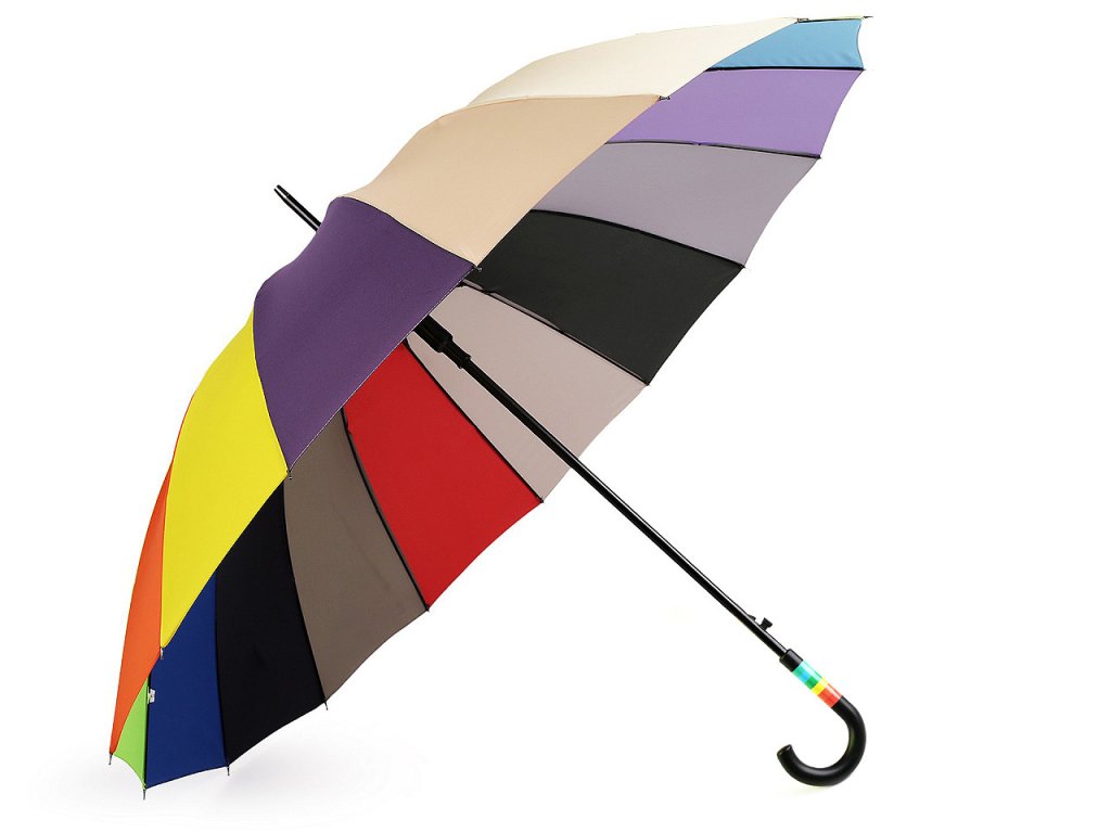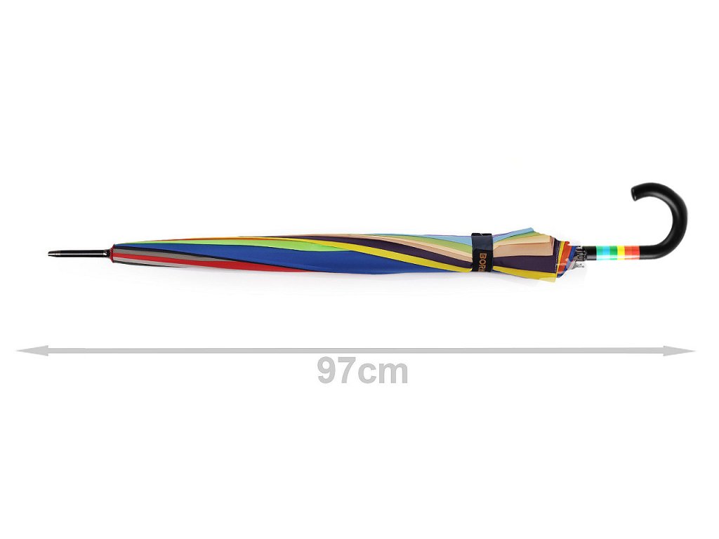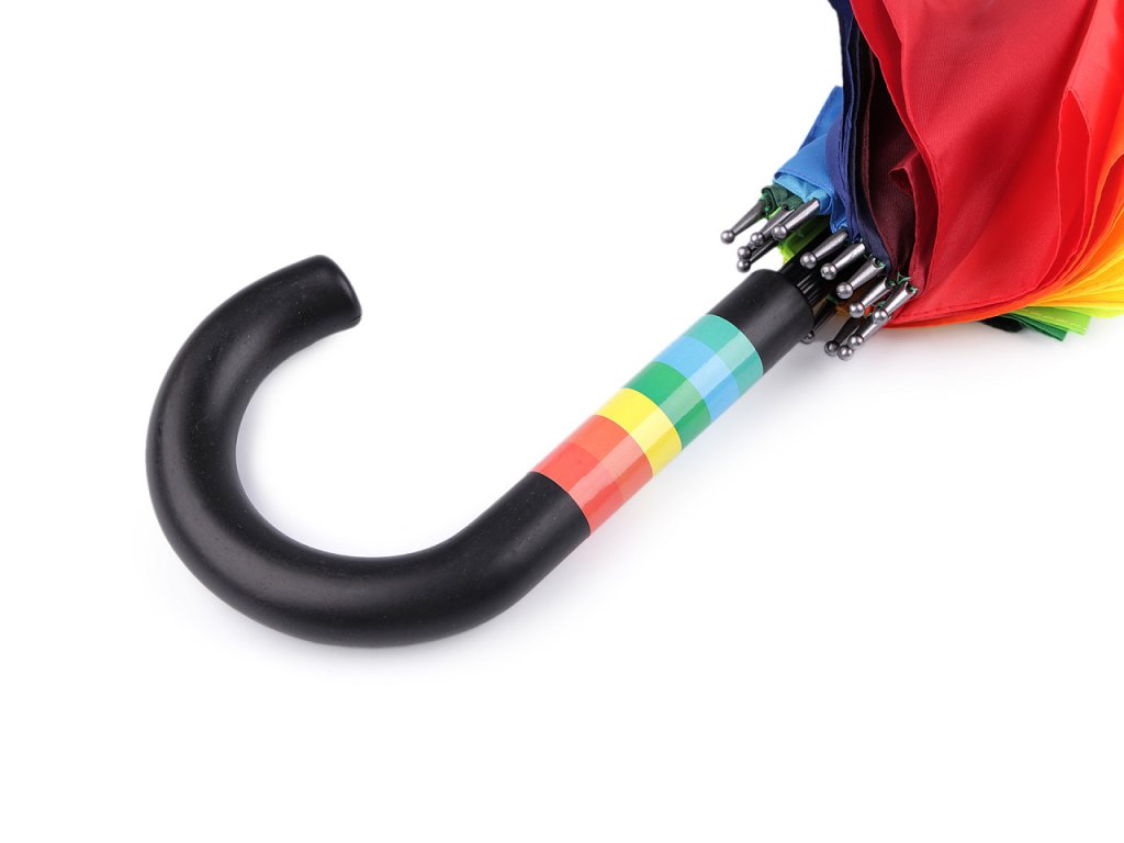 Luxusní vystřelovací deštník s duhou je díky velkému průměru vhodný jako deštník pro dva (rodinný deštník).
