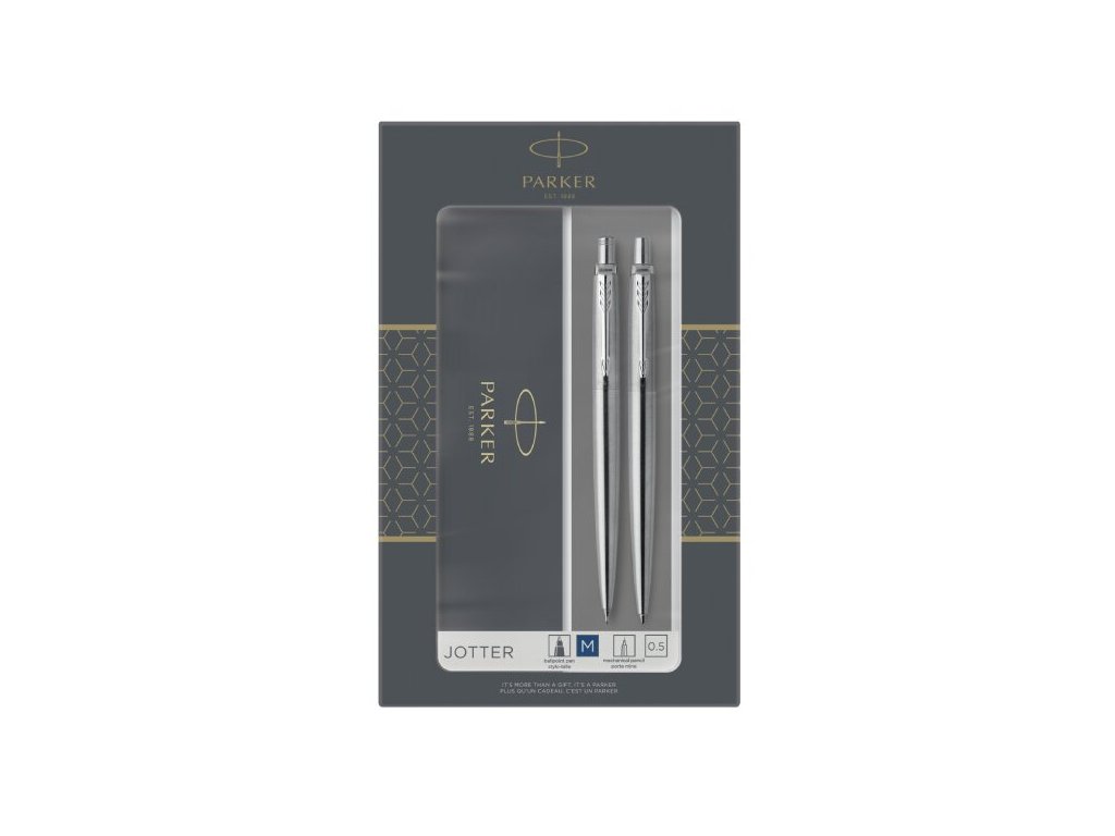 * tuha HB o síle 0,5 mm, Vyrobeno ve Francii. Dodáváno v dárkové kazetě. (Podoba balení dle skladové dostupnosti)., Parker Jotter je designérskou klasikou a důvěrně známou modelovou řadou, oceňovanou zejména pro svou kvalitu, spolehlivost a příznivý poměr ceny a výkonu. Jedná se o nadčasový model,, který i díky široké nabídce povrchových provedení a praktickému, jednoduchému tvaru patří mezi nejoblíbenější., TIP: Kupte si rovnou i náhradní náplň Parker do kuličkového pera.