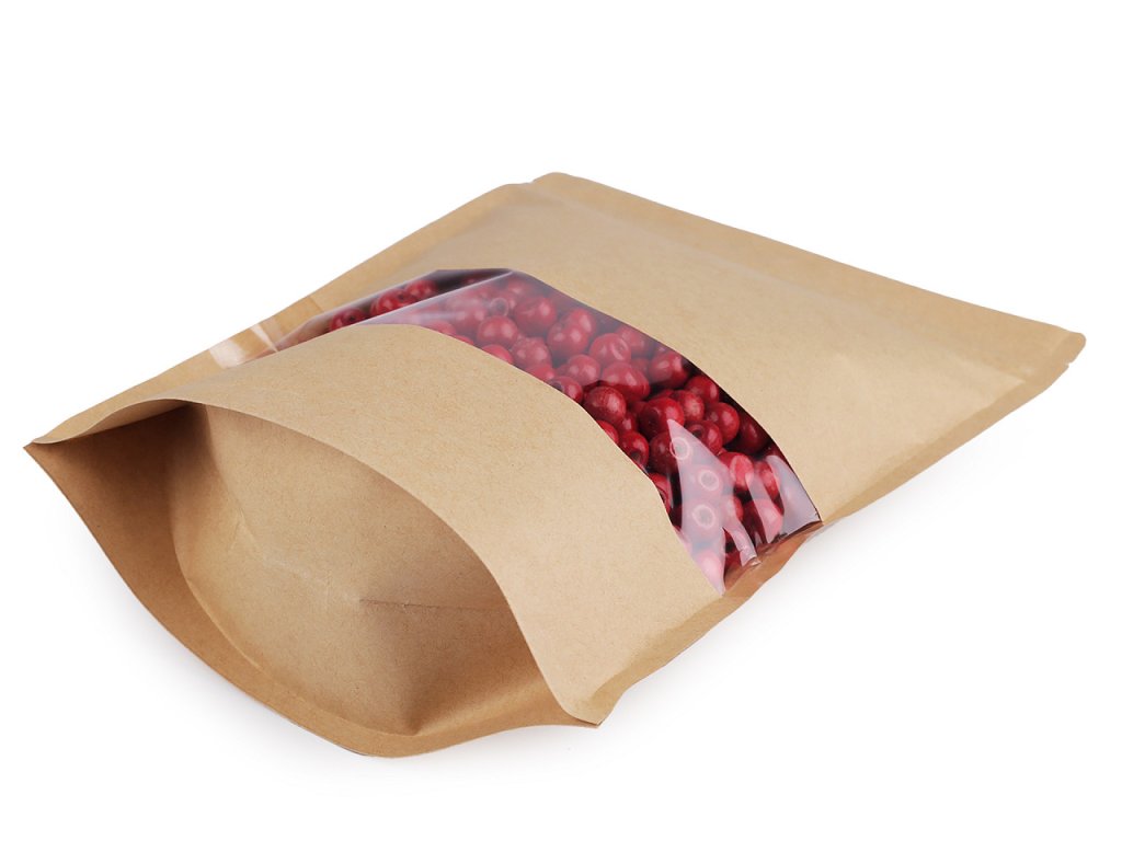 Papírový sáček s průhledem a rychlouzavíratelnou zipovou lištou je praktický pomocník při balení dárků nebo zboží v obchodě. [Sáček má průhled z čelní strany.] Samouzavírací zipovou lištu můžete opakovaně otevírat a zavírat. Papír můžete popsat nebo potisknout razítky.