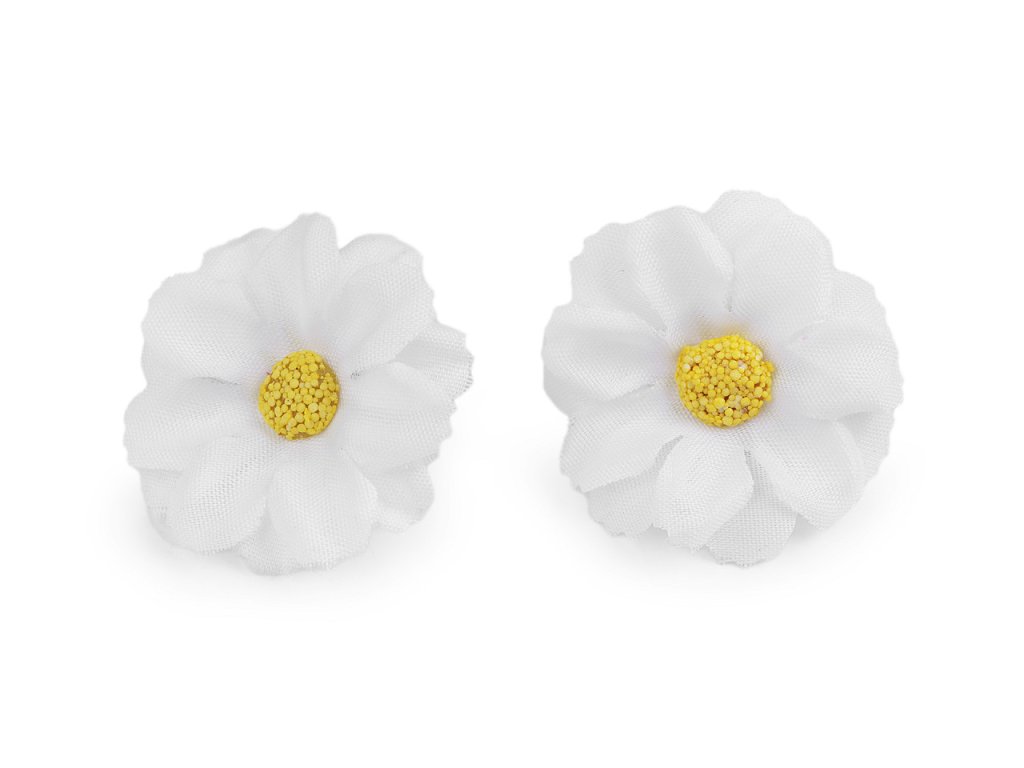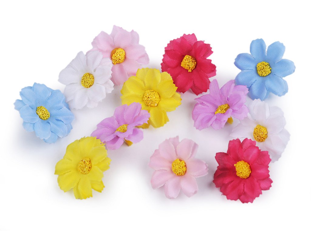 Drobné květy kopretiny využijete k aranžování květinových vazeb, ikeban či věnců. Můžete je také použít k dozdobení věnečků do vlasů, čelenek, fascinátorů nebo sponek. Do stonku lze zasunout drát s průměrem 2 mm.