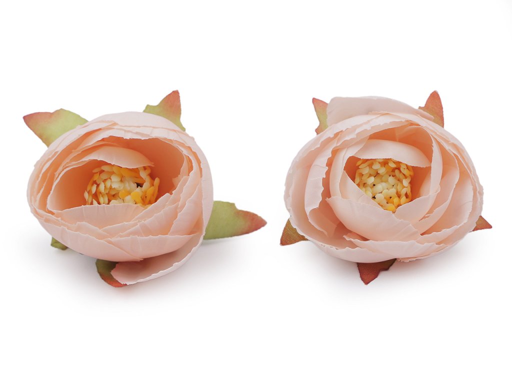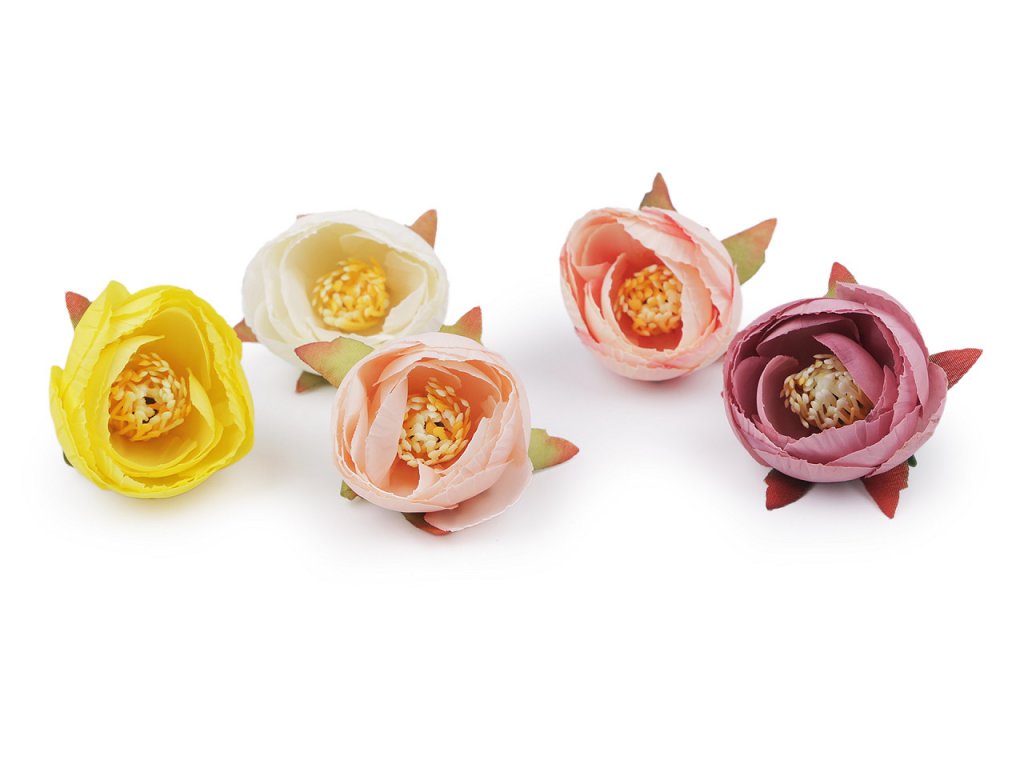 Květy pryskyřníku výborně doplní vaše květinová aranžmá, věnce nebo ikebany. Jsou detailně propracované, uvnitř květu mají drobné pestíky. S květy nevšedně ozdobíte také čelenky, sponky do vlasů či fascinátory. Ze spodní strany mají květy krátký plastový stonek o délce 1 cm, do kterého lze zasunout drát o maximálním průměru 2 mm.