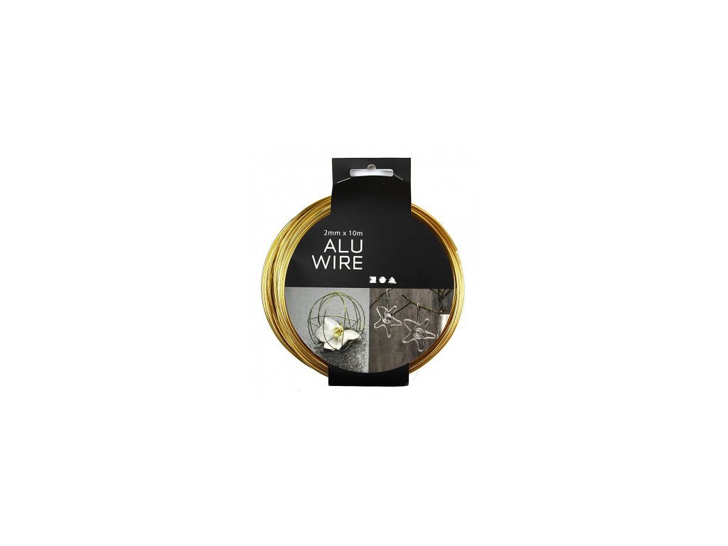 Hliníkový drát lakovaný na zlatou barvu, vhodný pro techniky drátkování a různé další tvoření. Délka drátu v balení je 10m, průměr 2mm. Výroba v EU.