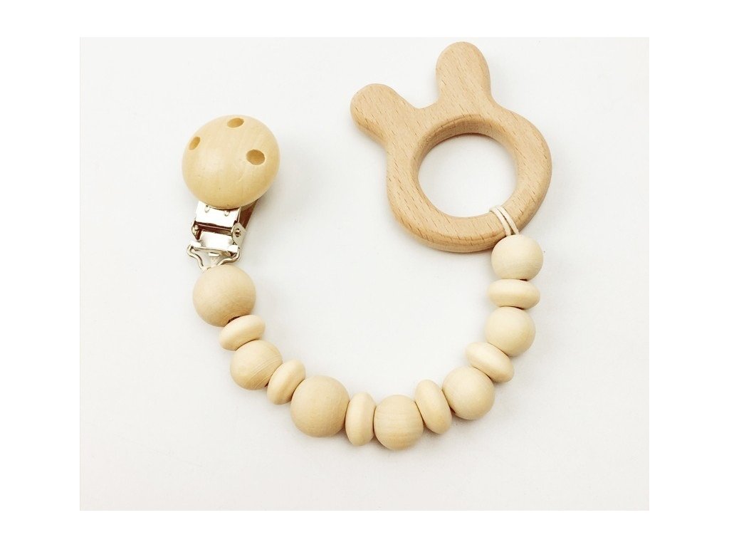 Moderní doplněk pro výrobu klipů na dudlík, určený k dalšímu dotvoření. Jedná se o dřevěný klip s kovovou sponou.