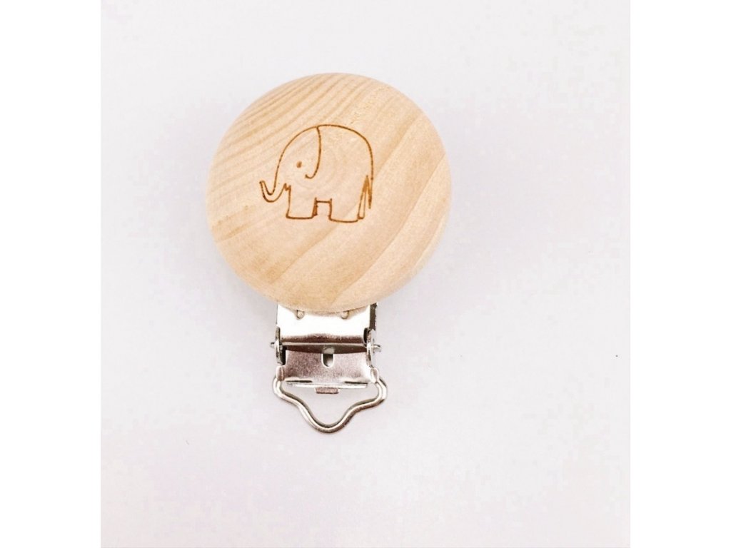 Klip na dudlík dřevěný (1ks) - slon