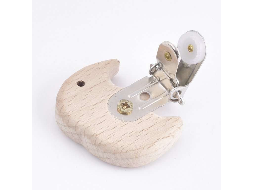Moderní doplněk pro výrobu klipů na dudlík, určený k dalšímu dotvoření. Jedná se o dřevěný klip s kovovou sponou.