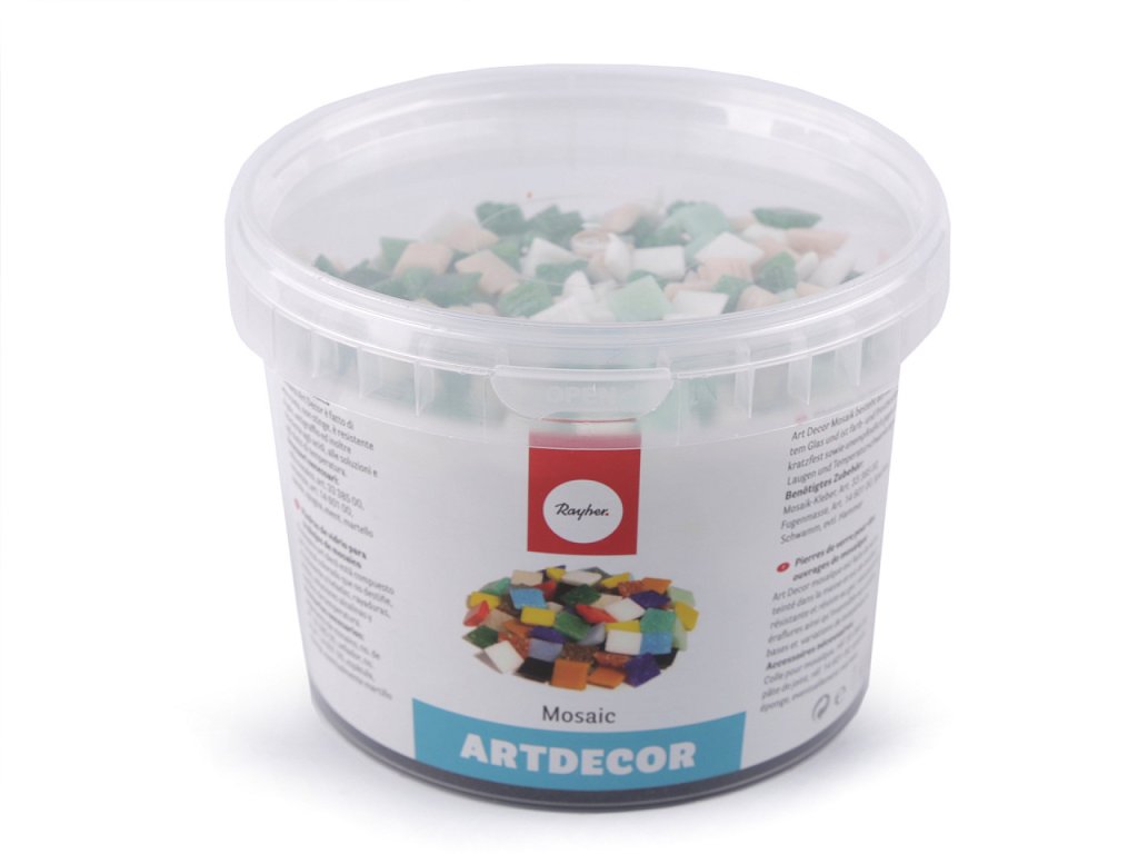 Mozaikové kamínky z barevného skla jsou stálobarevné, mrazuvzdorné a odolné proti poškrábání i teplotním výkyvům. Hodí na materiály jako je plast, dřevo, kámen, kov, keramika a jiné. Hrany jsou mírně zaoblené, zadní strana je profilovaná, aby lépe přilnula do betonové hmoty. Mozaikou můžete ozdobit kartónové a dřevěné krabičky, květináče, šperkové polotovary, skleněné vázy, svícny, lahve, amfóry, kameny apod.