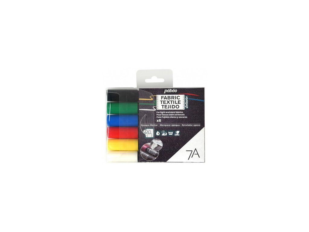 Krycí markery na textil s 4mm hrotem značky Pebeo. Jsou vhodné pro světlý i tmavý textil, zažehlují se po rubové straně 5-7 minut, následně jsou odolné praní v pračce na 40°C.