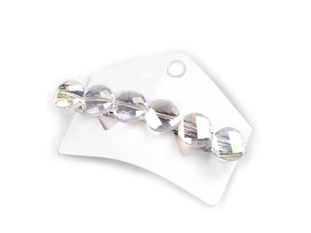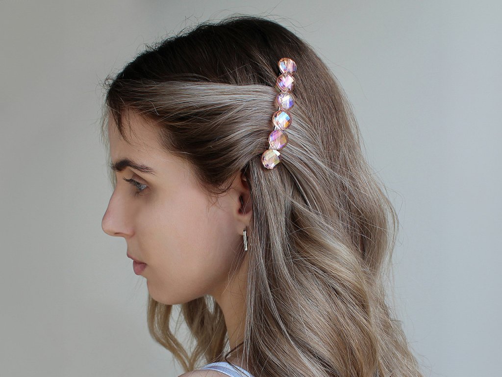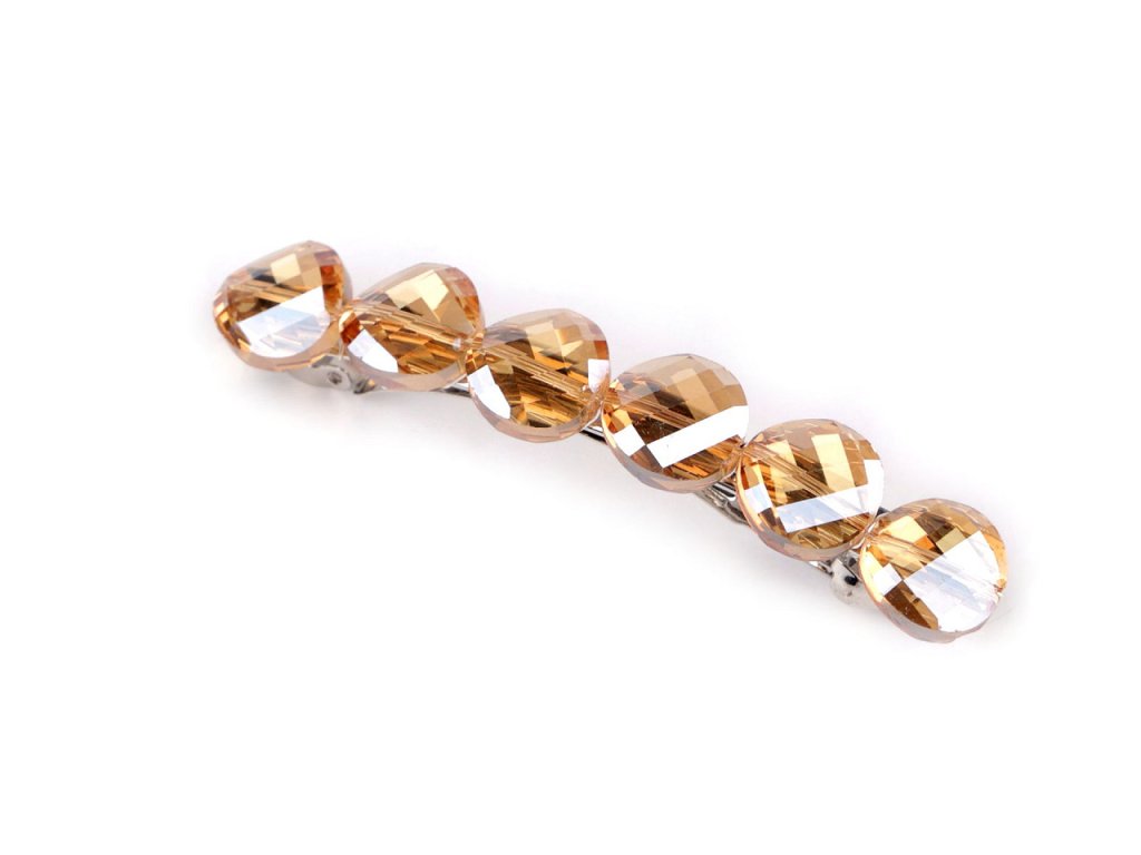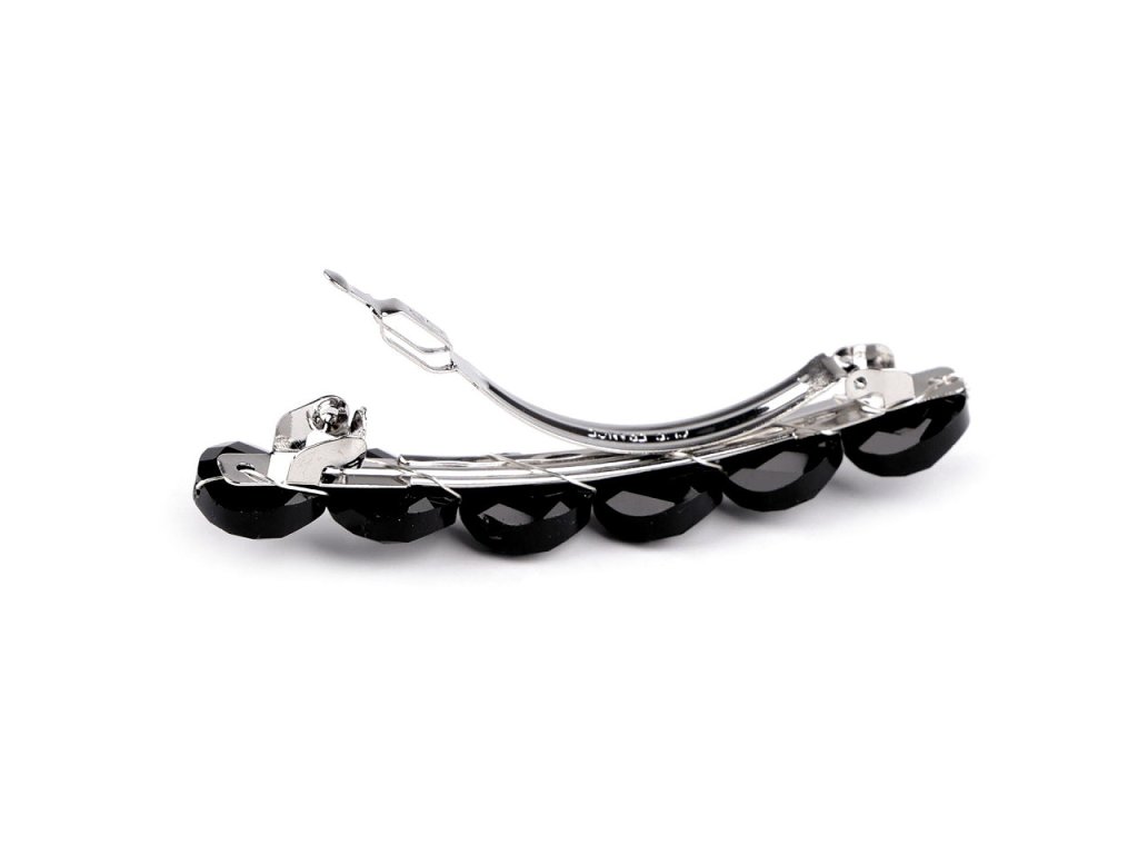 Francouzská spona zdobená akrylátovými broušenými kameny luxusně ozdobí váš účes. Nádherně se leskne a přitahuje pozornost. Ať už máte jemné prameny nebo husté lokny, touto sponou snadno sepnete vlasy do copu nebo vytvoříte elegantní drdol, který bude vypadat, jako kdyby ho vytvořil profesionál. Spona má kvalitní celokovové provedení, zacvakávací mechanismus je pevný. Délka části pro vlasy je 5,5 cm.