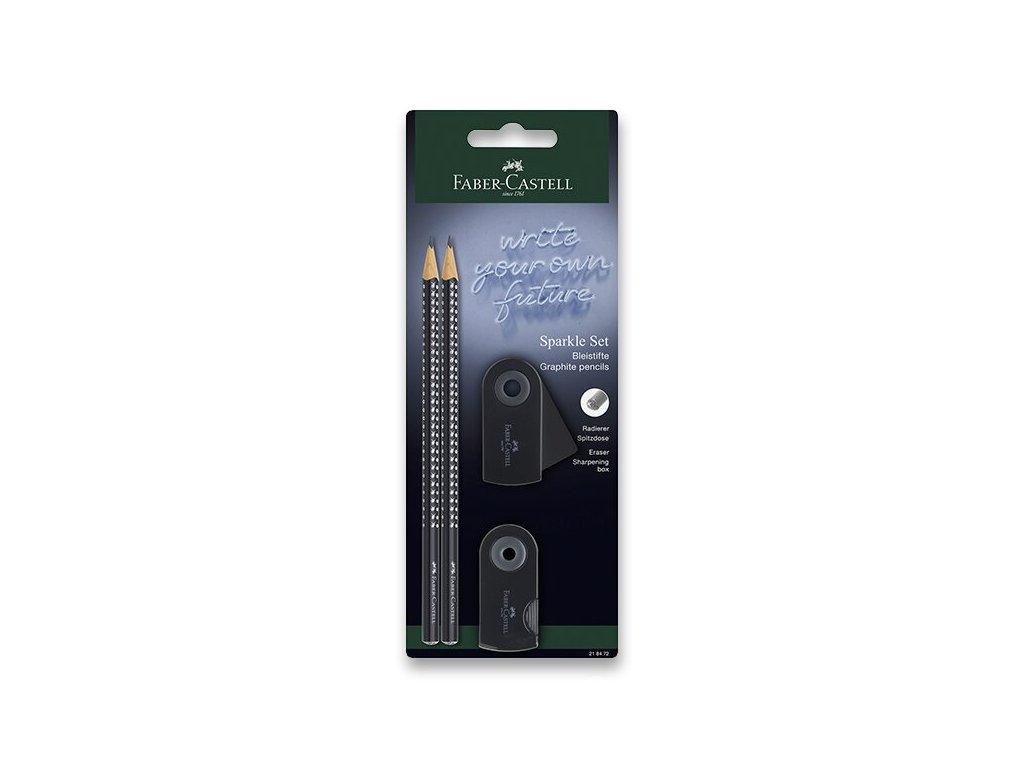Set dvou kvalitních grafitových tužek Faber-Castell Sparkle, ořezávátka Faber-Castell Sleeve Mini a pryže Faber-Castell Sleeve Mini. V atraktivní barvě.