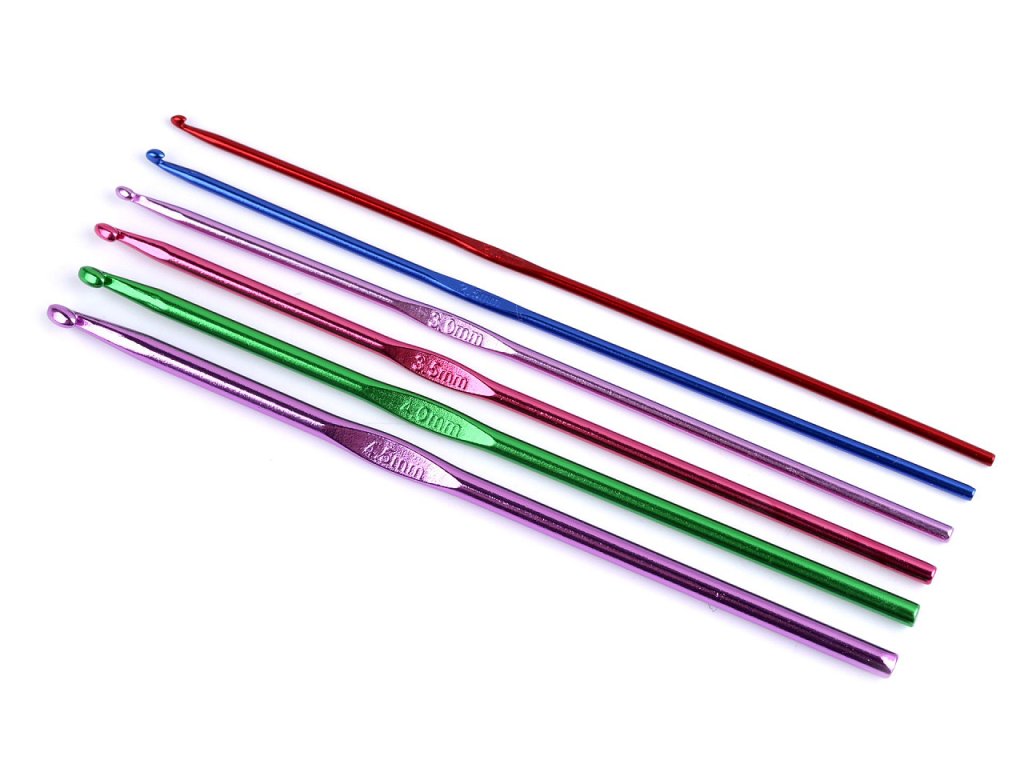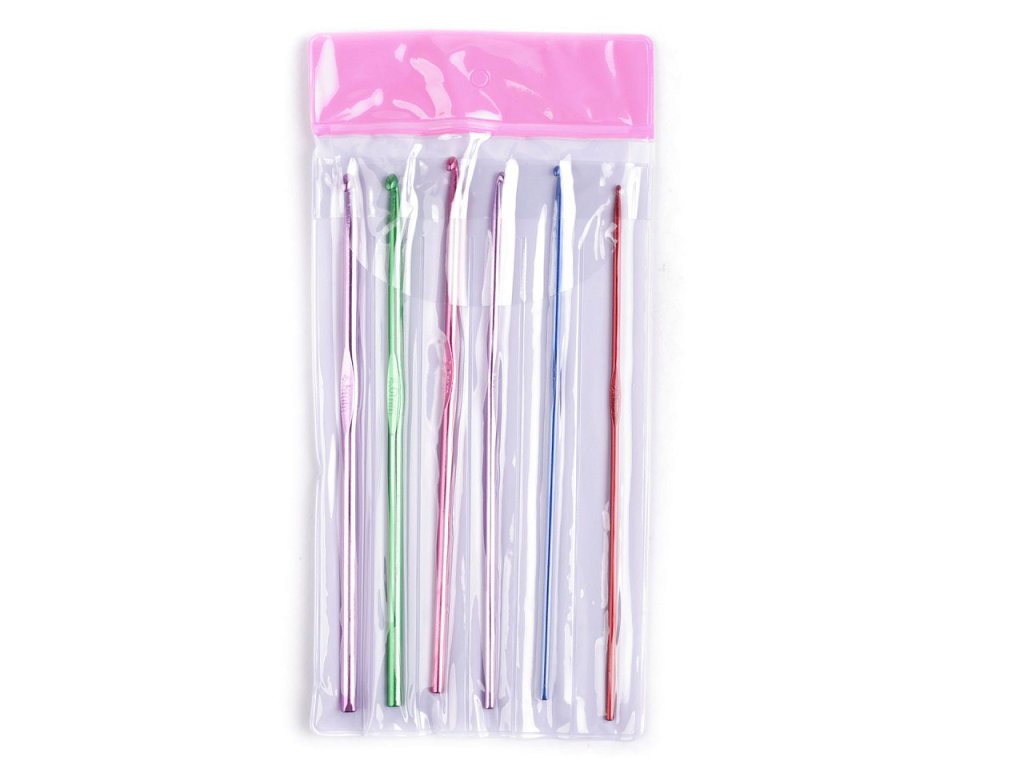 Sada 6 ks klasických hliníkových háčků následujících velikostí: 2; 2,5; 3; 3,5; 4; 4,5. Jsou zabalené v plastovém obalu, každý kus je v samostatné přihrádce.