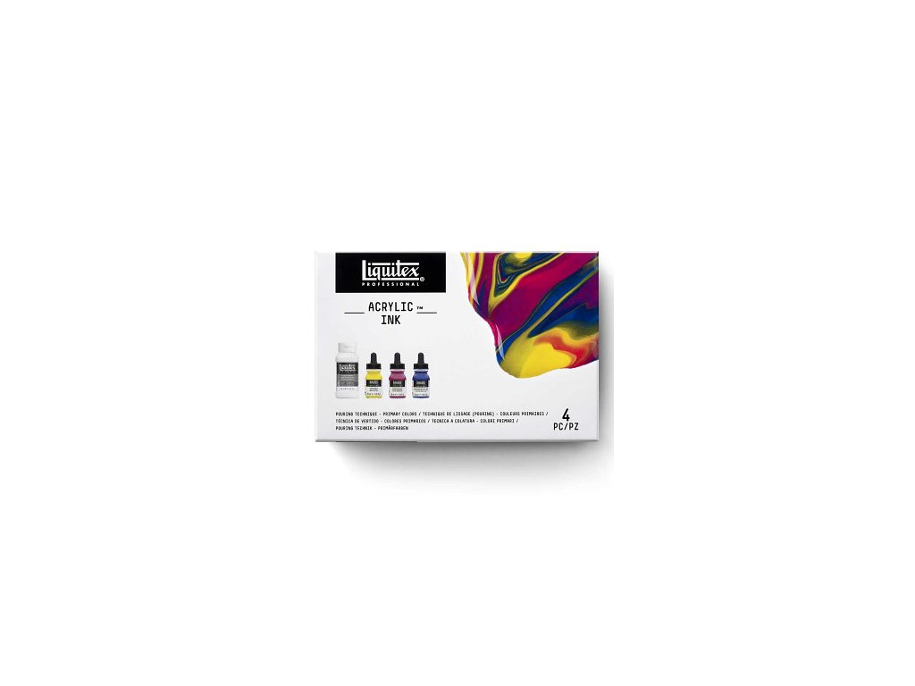 Akrylový inkoust pro profesionály v sadě určené primárně pro lití - tzv. pouring a flow painting.