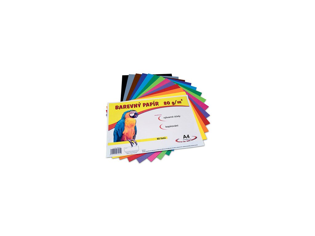 Složka barevných papírů pro kresbu a další tvoření. Celkem 12 různých barev po 5 listech: žlutá, oranžová, červená, fialová, růžová, modrá, tmavě modrá, zelená, tmavě zelená, hnědá, šedá černá. Gramáž 80g/m2.