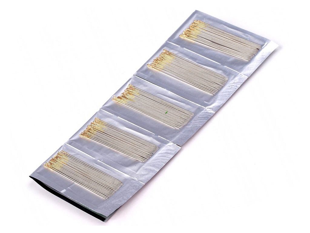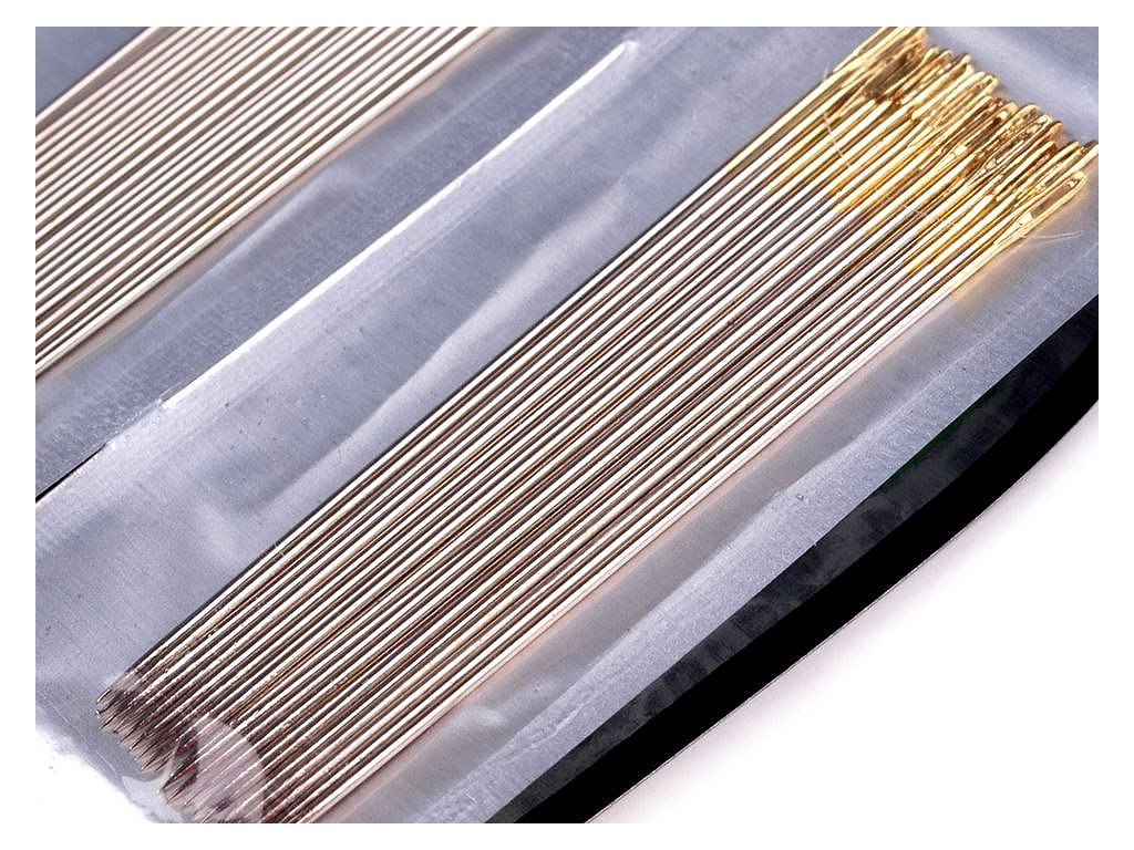 [Jehly jsou skvělým pomocníkem při práci s nejdrobnějšími korálky. Mají zlaté ouško.Jeden sáček obsahuje 15 kusů jehel.]
