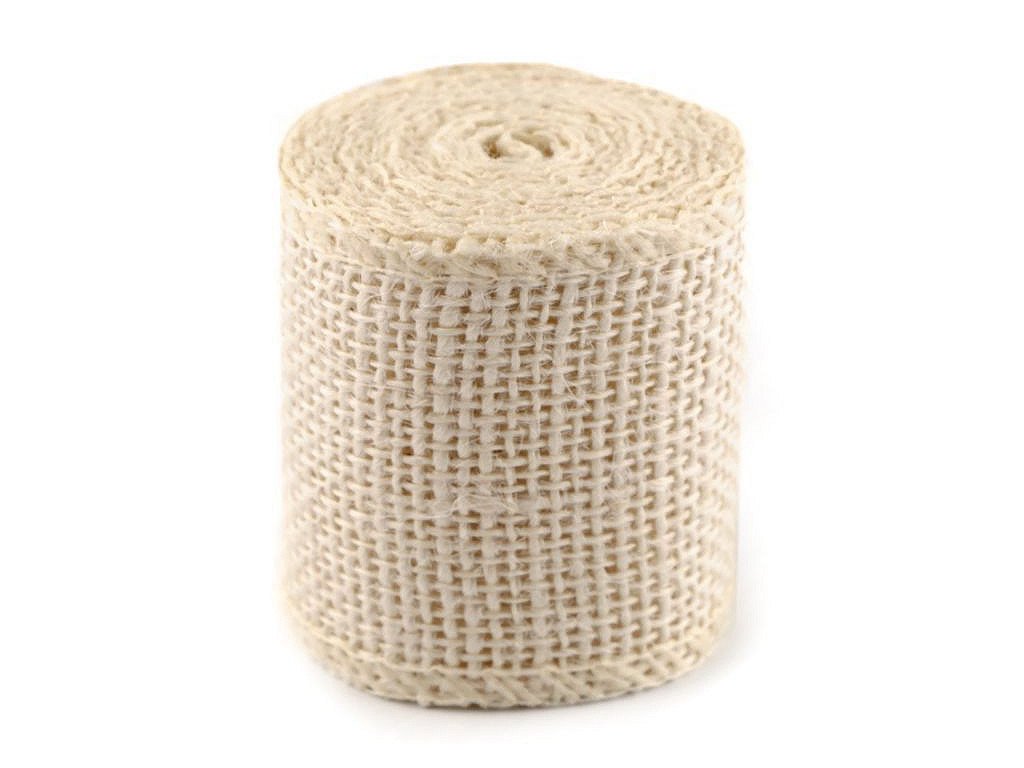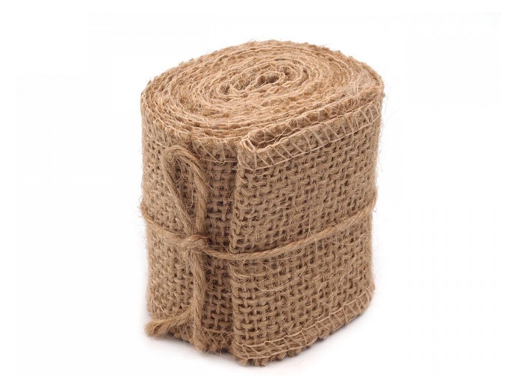 [Jutová stuha je pevná, netřepí se a vytvoří zajímavou kombinaci s krajkou.]