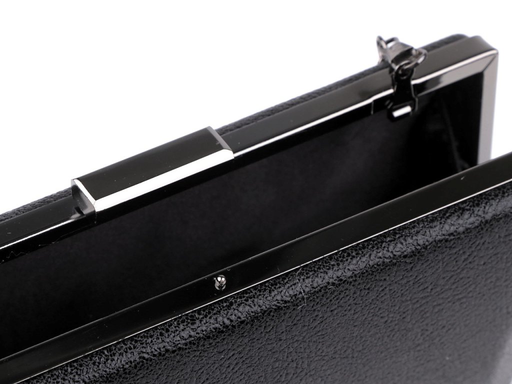 Malá společenská kabelka vám dodá eleganci. Její povrch má jemnou strukturu připomínající kůži. Zdobí ji výrazné lesklé zapínání a po celém obvodu rámeček v barvě kabelky.