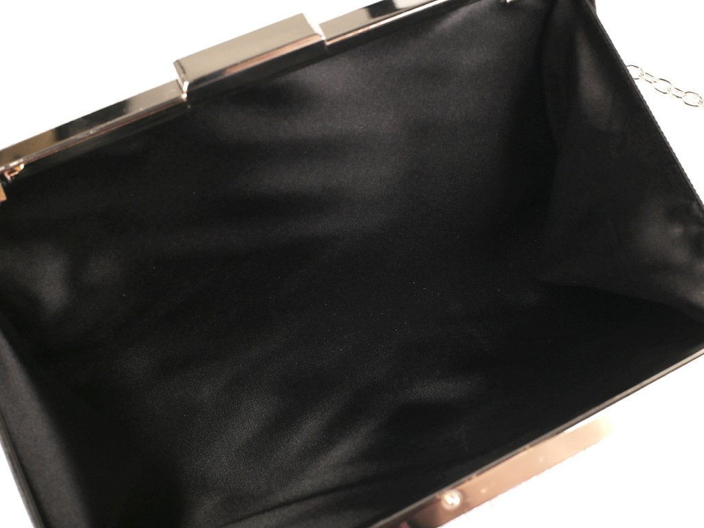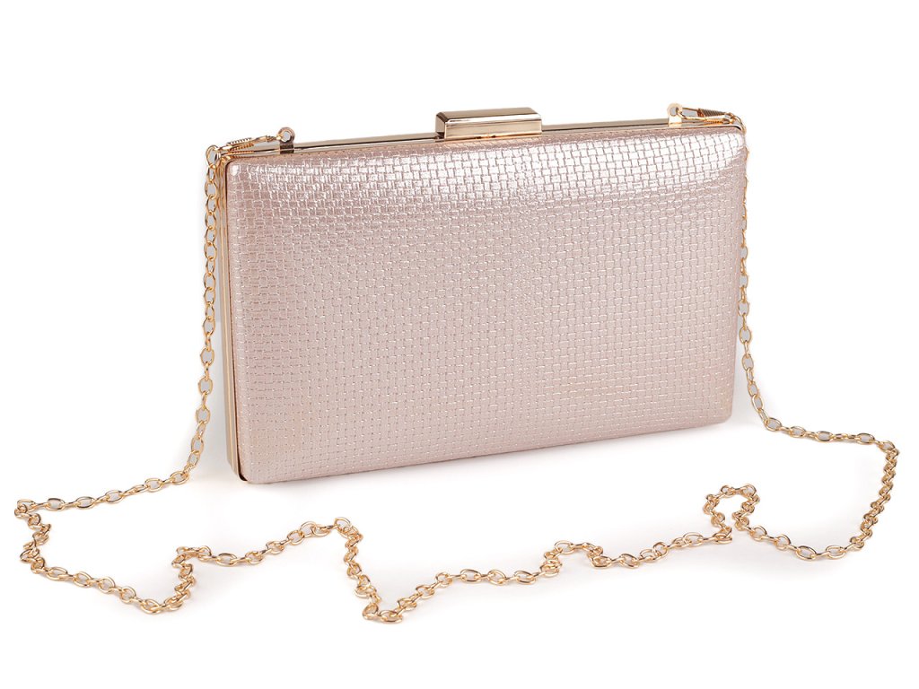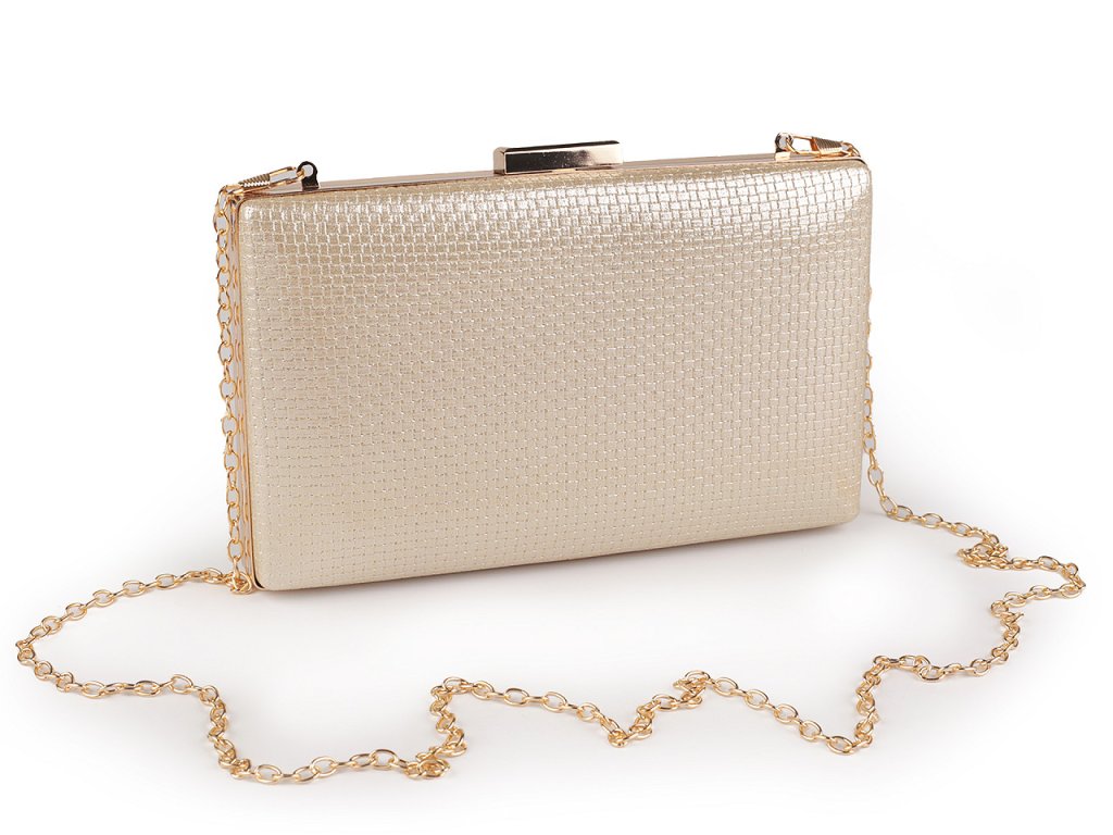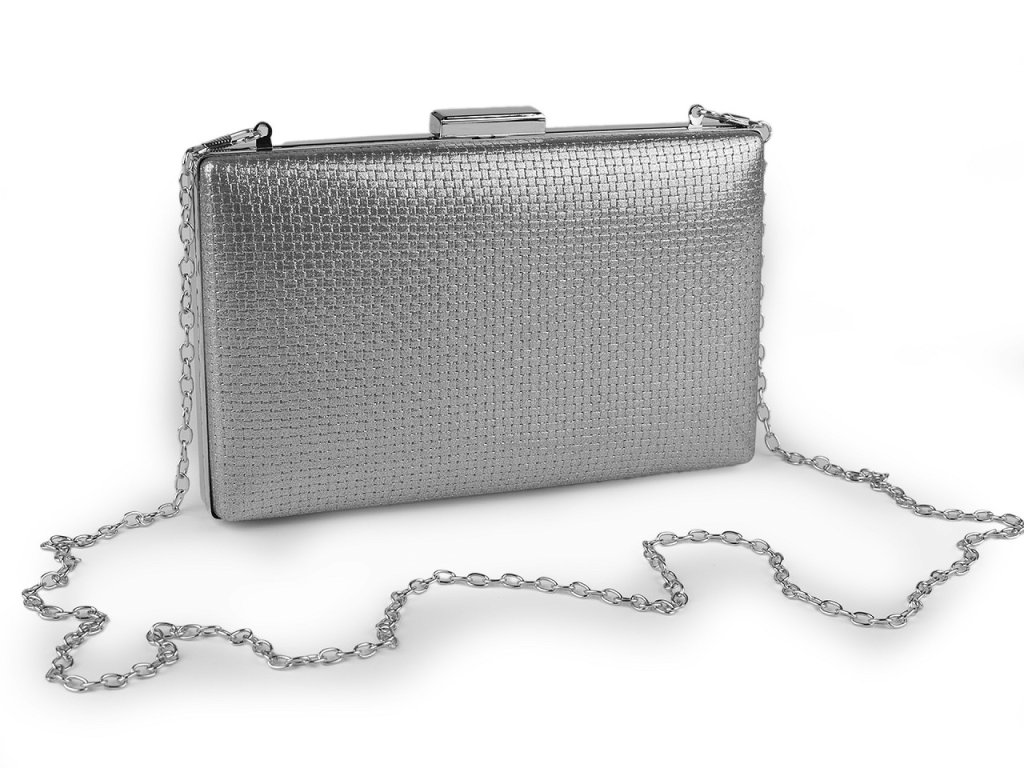 Malá společenská kabelka vyzařuje eleganci a luxus, má metalický lesk. Povrch má zajímavou kostičkovou strukturu. Zdobí ji výrazné lesklé zapínání a rámeček po celém obvodu. Kabelka je pevně vyztužená, její součástí je dlouhý odnímatelný řetízek na karabiny. Můžete ji nosit v ruce nebo jako crossbody přes rameno či do kříže.