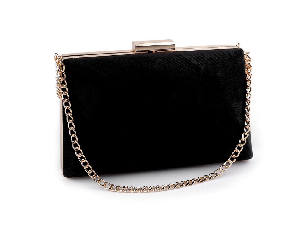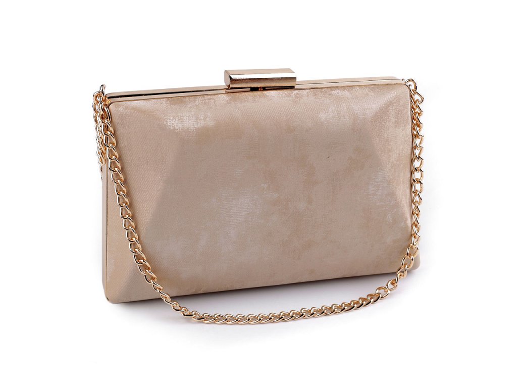 Luxusní společenská kabelka bude pravým doplňkem vašeho slavnostního outfitu. Její povrch má zajímavou semišovou strukturu. Zdobí ji ucha v podobě řetízků a lesklé kovové zapínání, po celém obvodu je kovový rámeček.