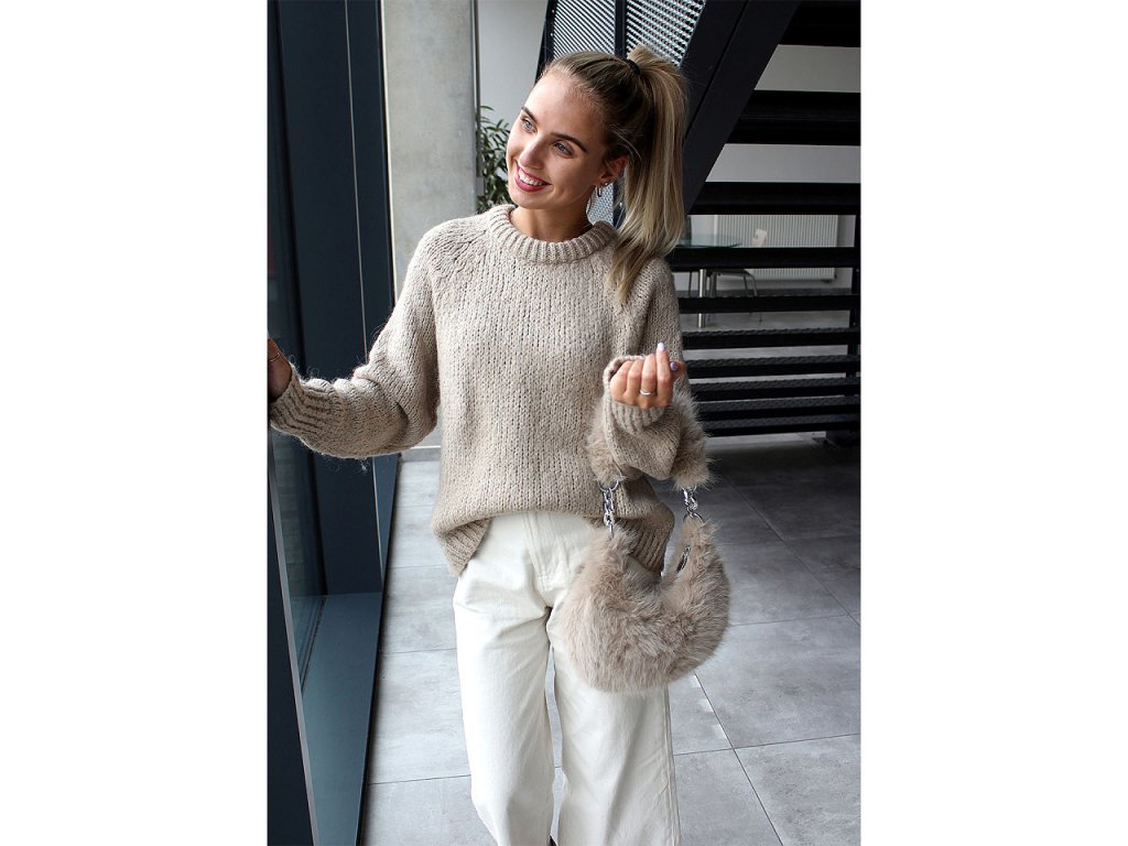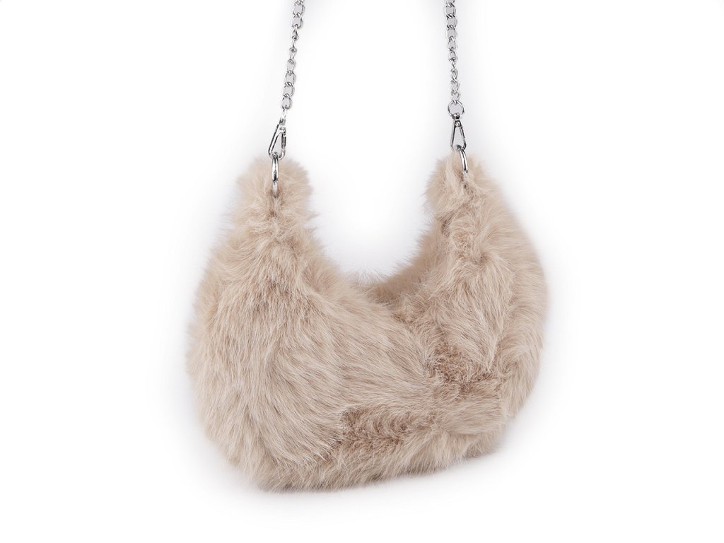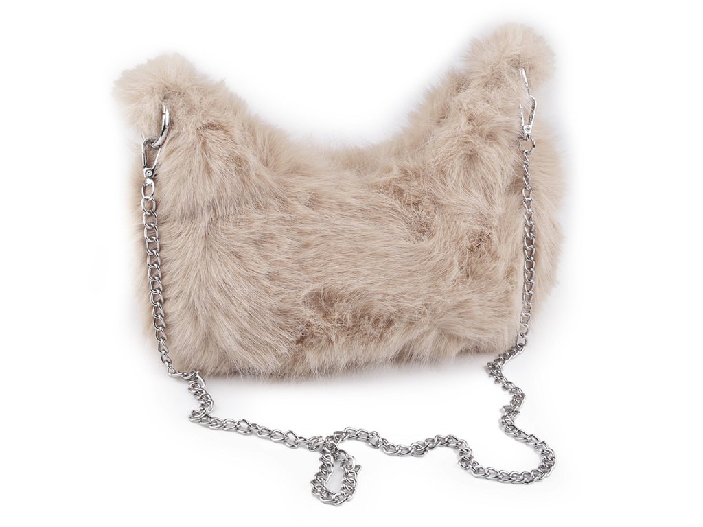 Kožešinová kabelka je nadčasovým módním kouskem. Snadno ji sladíte s jakýmkoliv outfitem. Zavírá se na zip. Součástí kabelky je odnímatelné designové ucho kombinované s řetězy. Je určené do ruky i k nošení na rameni. Nebo jej můžete vyměnit za řetízkový popruh, kabelku můžete nosit jako crossbody přes rameno či do kříže.