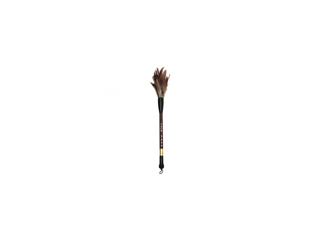 Velký čínský kaligrafický štětec s jemným kohoutím peřím. Štětiny jsou zasazeny do bambusové rukojeti s motivy draka. Na konci má štětec poutko.