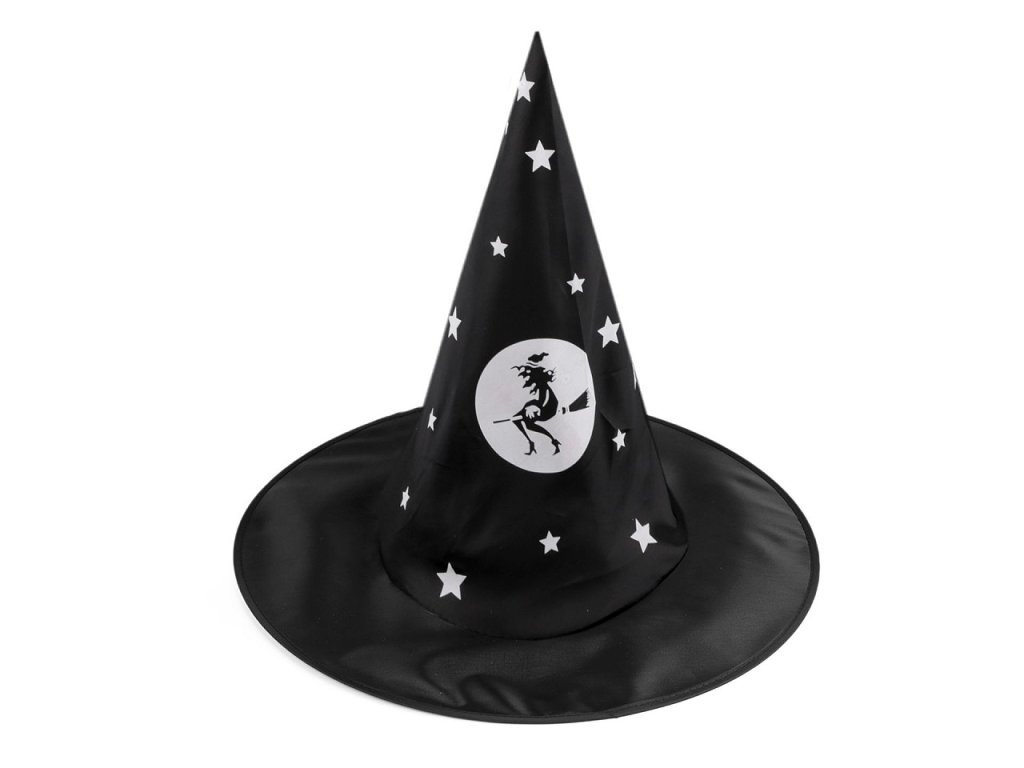 Karnevalový klobouk vás promění v čaroděje nebo čarodějnici. Dobře drží tvar, je z neprůhledné polyesterové tkaniny. Nahoře na přední straně má potisk. Můžete si ho dozdobit dle vlastního vkusu a fantazie.