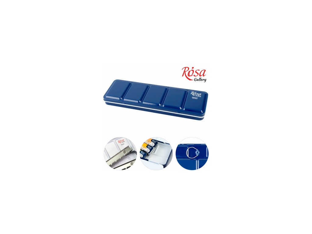Univerzální kazeta pro akvarelové barvy v pánvičkách. Je vhodná jak pro menší 1/2 pánvičky, tak i pro větší 1/1 pánvičky (jako je velikost barev Rosa stejné značky). Do této kazety umístíte 14ks velkých pánviček. Výhodou jsou vyjímatelné jednotlivé řady barev, praktický prostor pro míchání barev a odolnost pro transport.