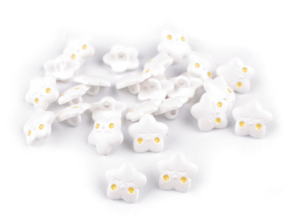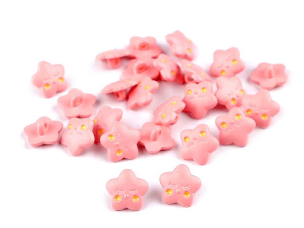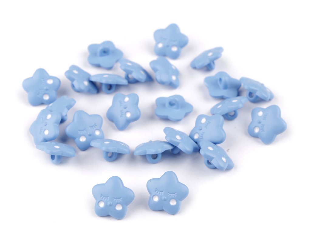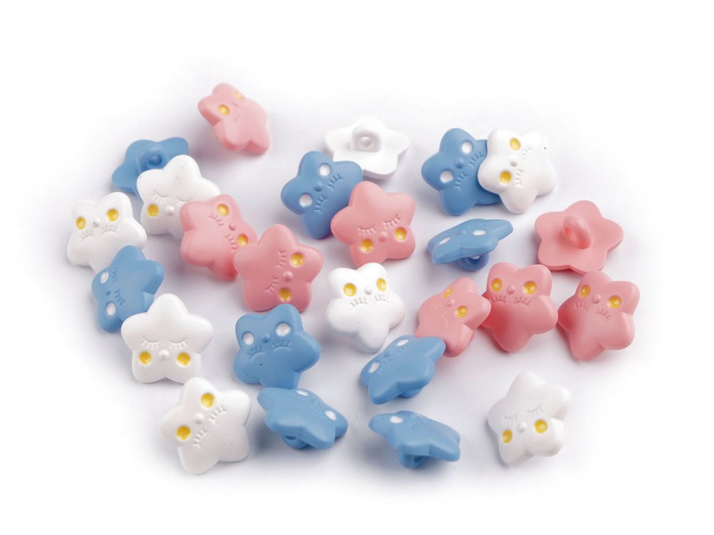 Knoflíky ve tvaru hvězdičky působí roztomile a rozveselí každý dětský oděv i doplněk. Můžete je našít na svetříky, šaty, bundy, batůžky i tašky.