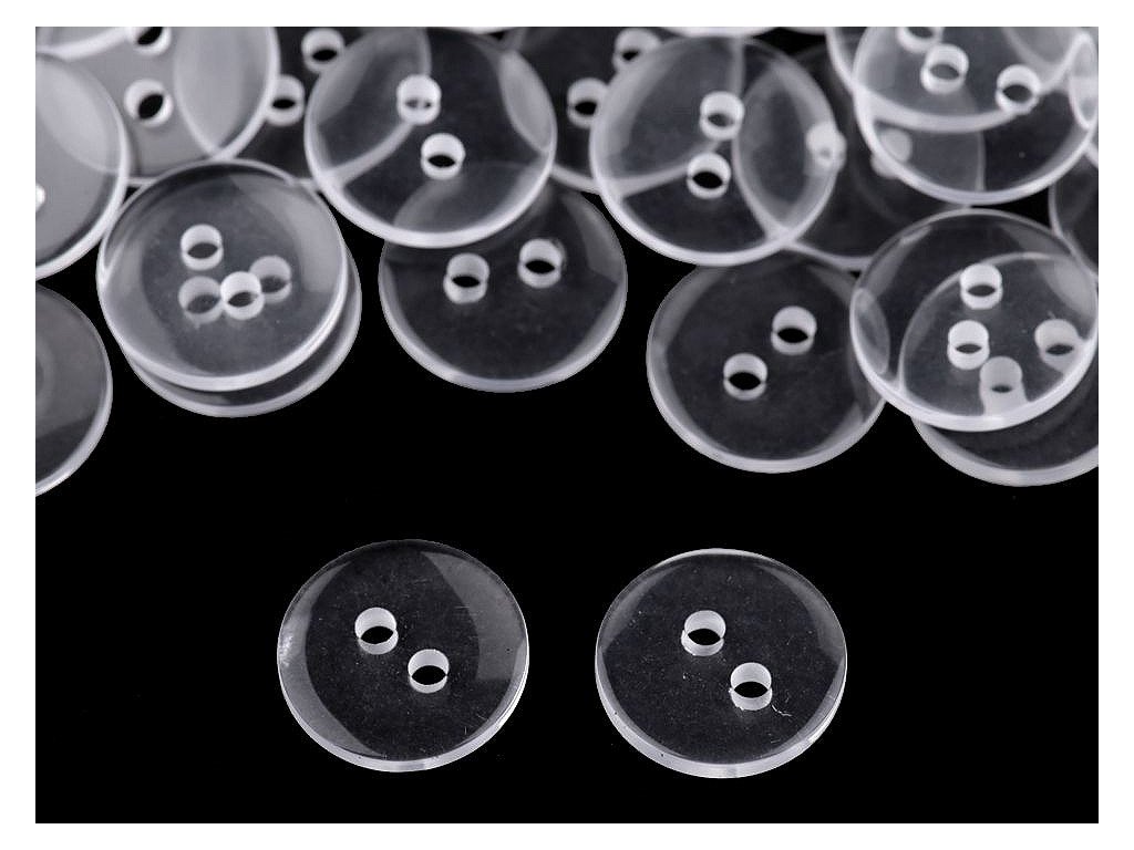 Dvoudírkové knoflíky jsou vhodné k našití na košile, košilové límce, svetříky apod. Jsou hladké, hodí se i na podšití.