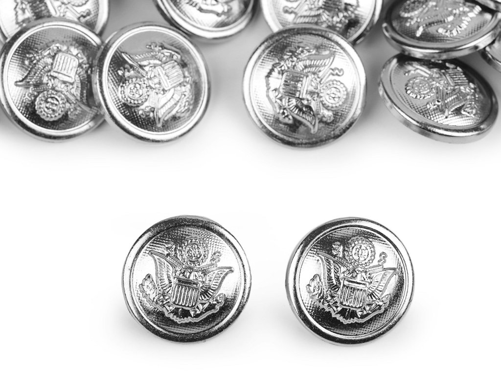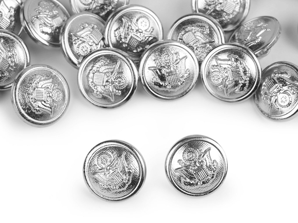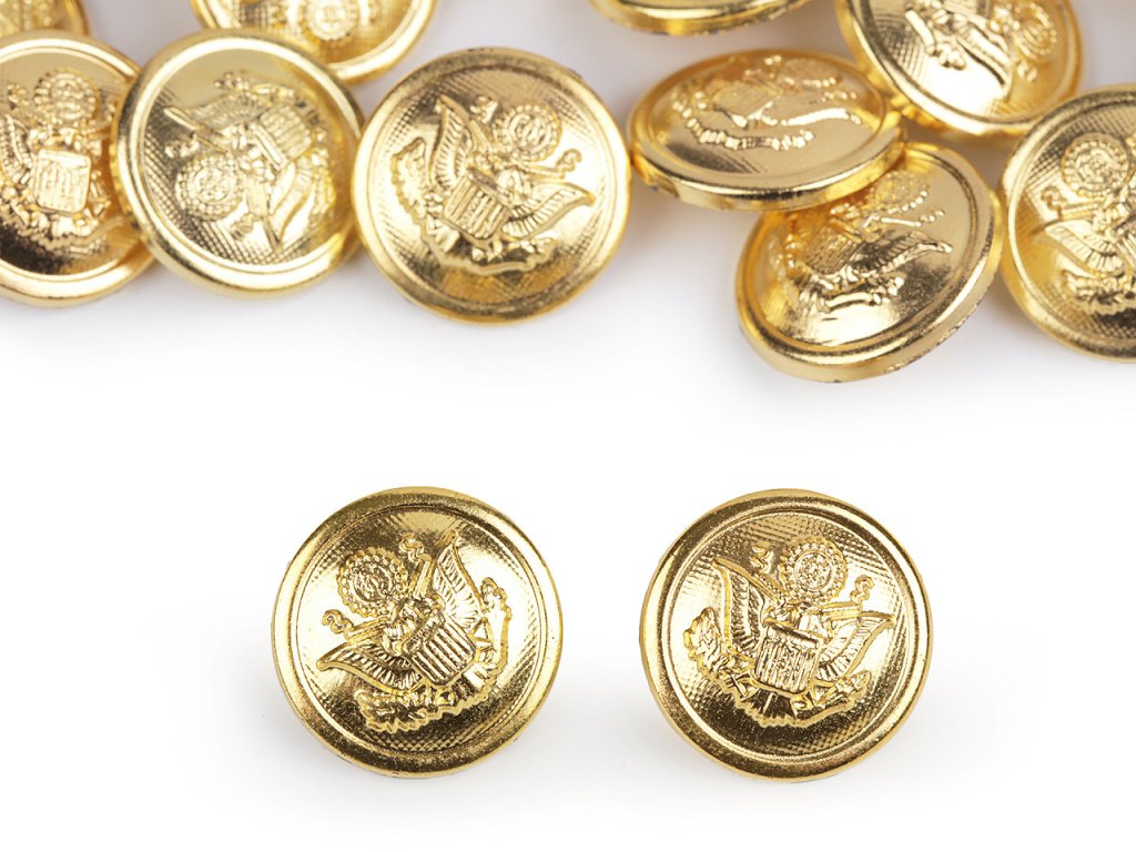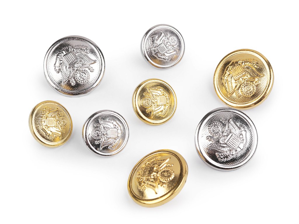 Knoflíky s erbem vyniknou na kabátcích, sakách, halenkách i doplňcích. Jsou lehké a mají spodní přišívání.