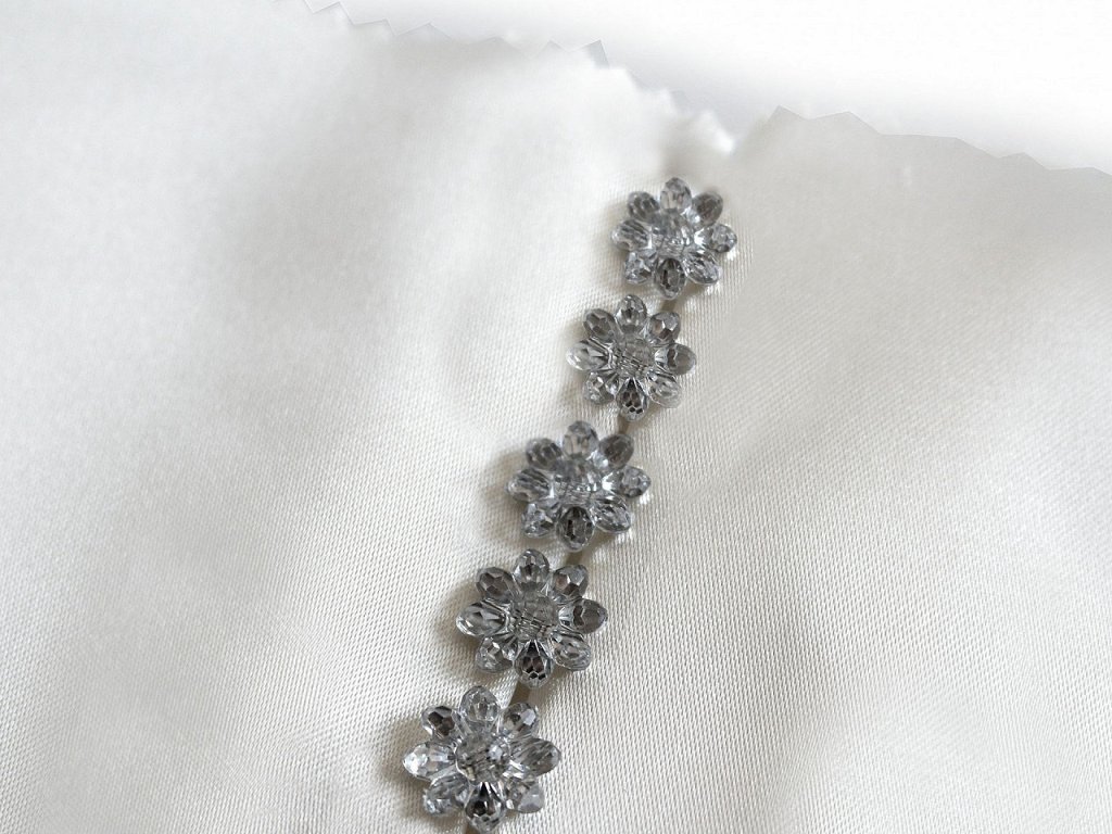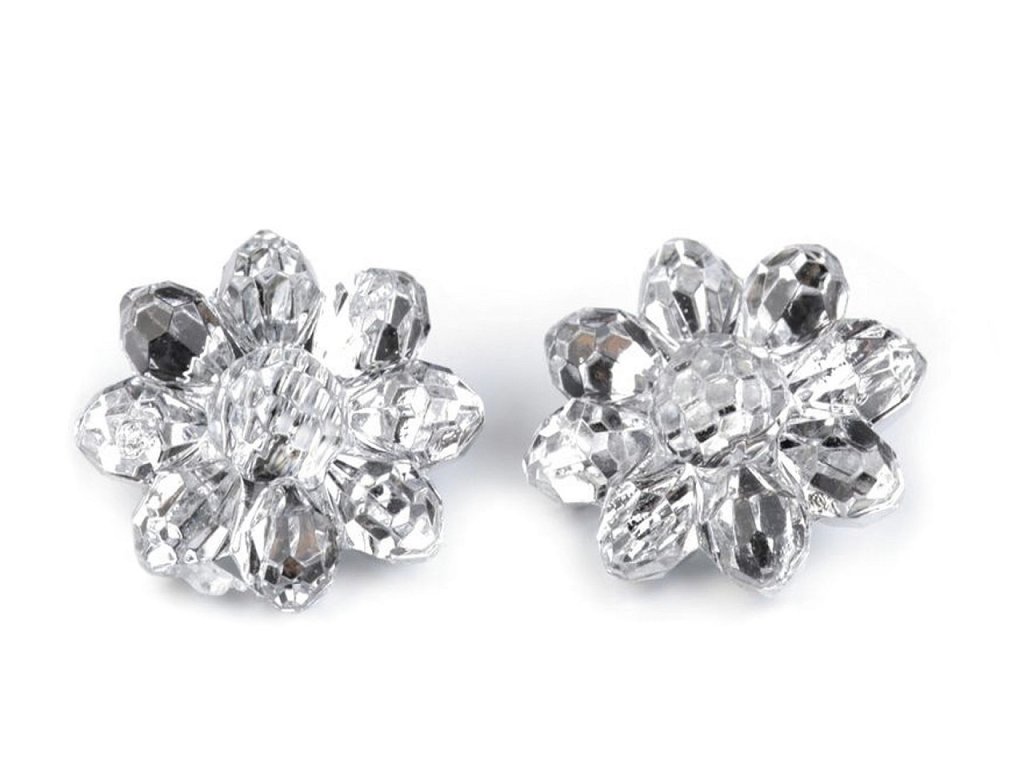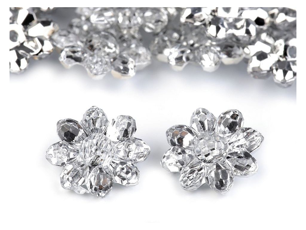 Broušené knoflíky mají tvar květu. Díky efektnímu lesku jsou vhodné k ozdobení společenských a svatebních šatů, bolerek, sak nebo svetrů. Mají spodní přišívání.
