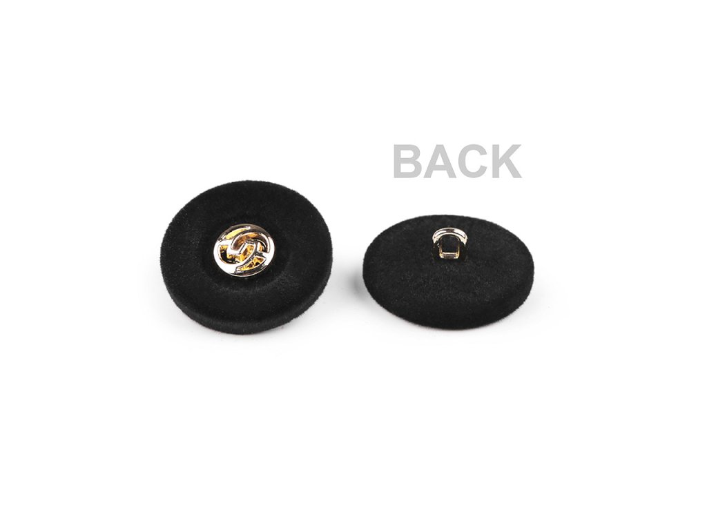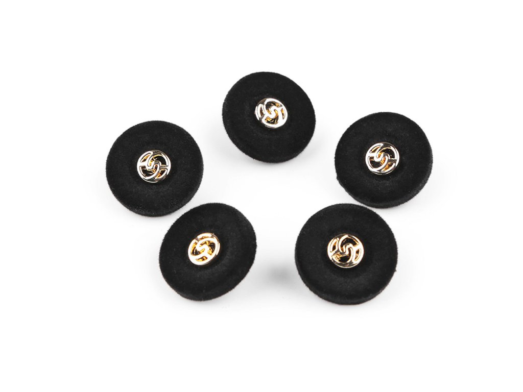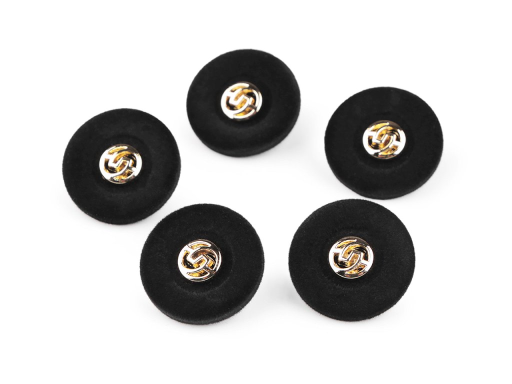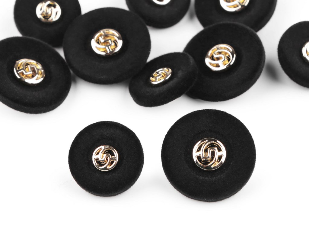 Elegantní knoflíky jsou potažené sametem a v jejich středu je kovová ozdoba. Vyniknou na sakách, svetrech, vestách apod. Mají spodní přišívání.