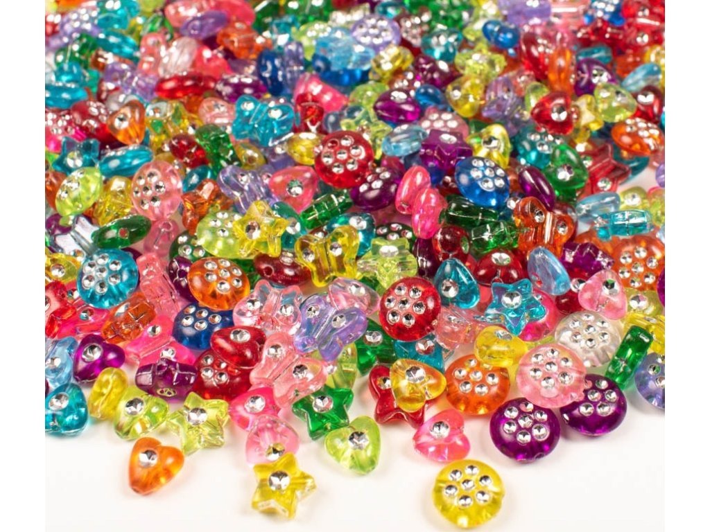 Korálky smíšených barev v různých tvarech s prvky třpytivých kamínků. Vytvořte si náramky a náhrdelníky, nebo proč ne hezkou dekoraci na klíčenku. Lepení nebo přišívání korálků na jakýkoli povrch je také příjemné. Popusťte uzdu své fantazii a kombinujte je s korálky v jiných barvách a tvarech v nekonečných variacích.